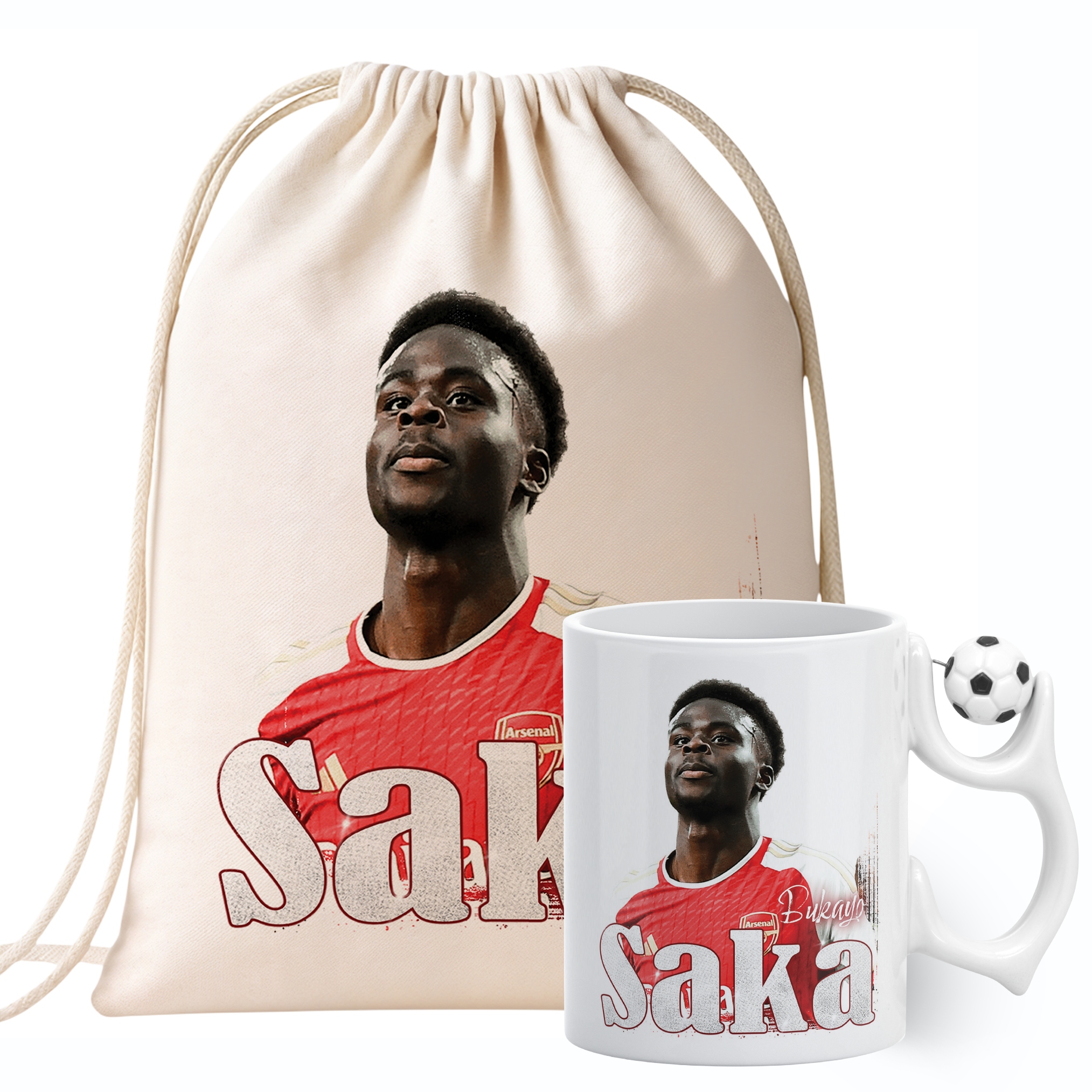 ✨ Zestaw prezentowy plecak bawełniany i kubek piłkarski dla kibiców Arsenalu – Idealny prezent dla fanów Bukayo Saki, którzy kochają piłkarskie emocje! ✨