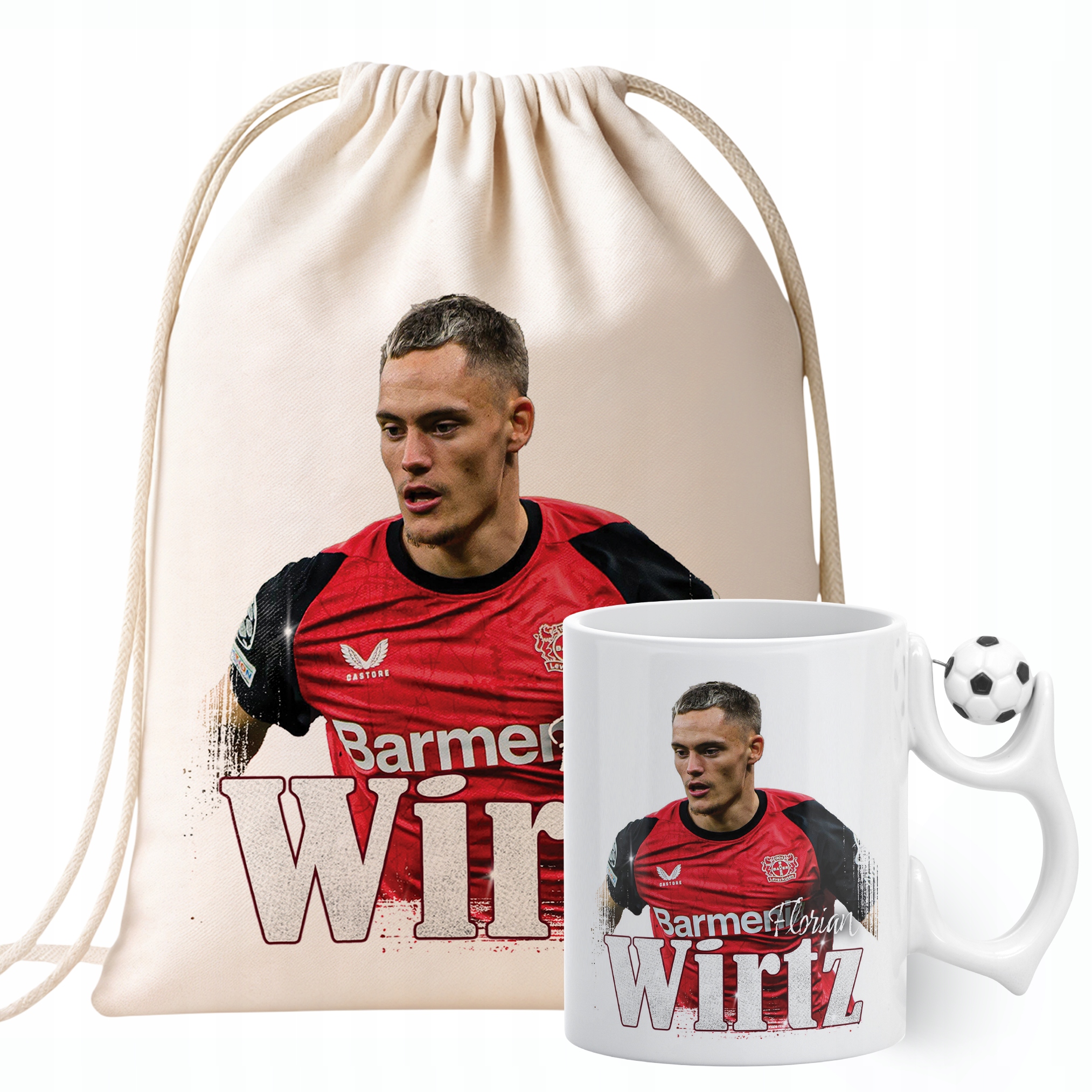 ✨ Zestaw prezentowy plecak bawełniany i kubek piłkarski dla kibiców Bayeru Leverkusen – Idealny prezent dla fanów Floriana Wirtza, którzy kochają piłkarskie emocje! ✨
