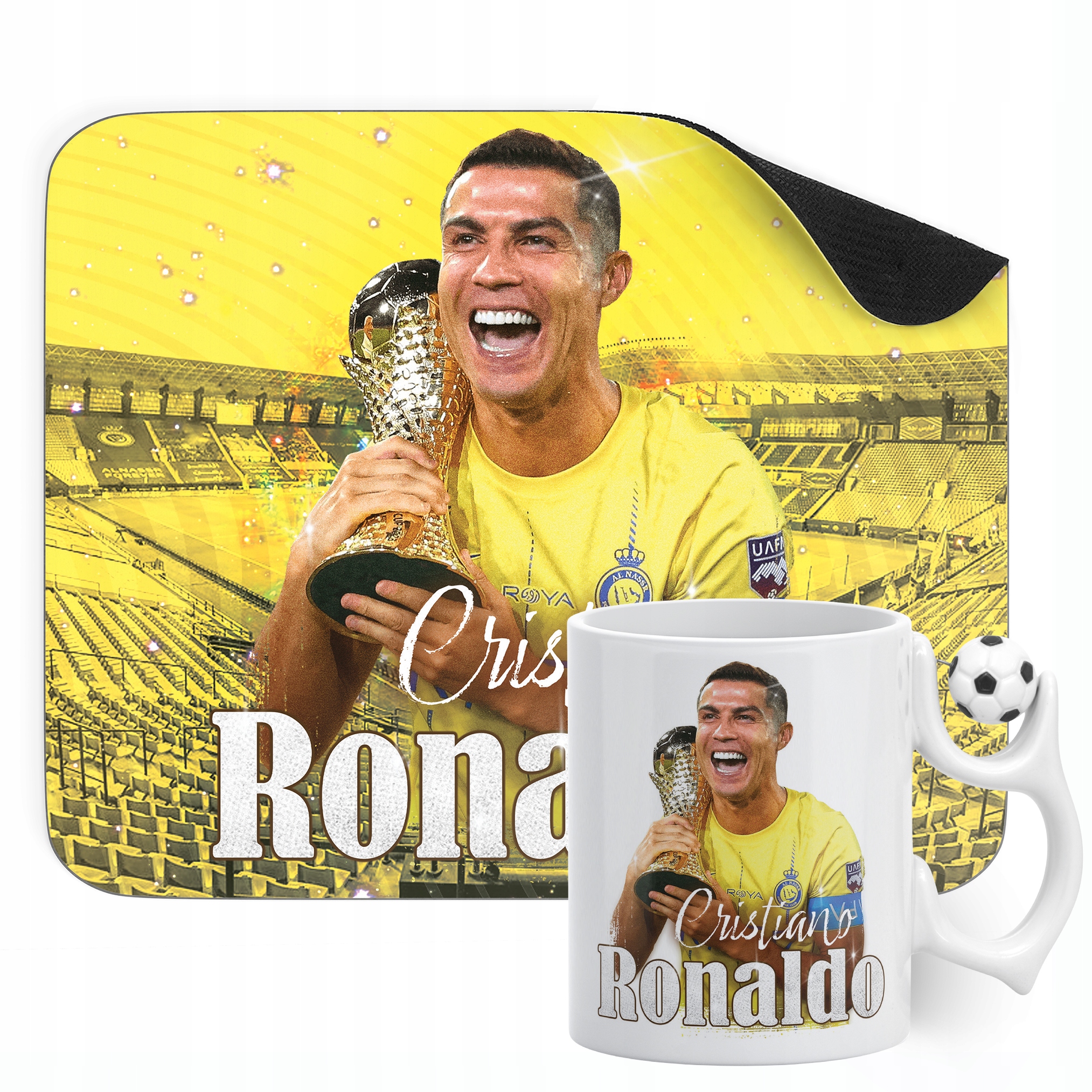 ✨ Zestaw prezentowy podkładka pod mysz i kubek piłkarski dla kibiców Al-Nassr – Idealny prezent dla fanów Cristiano Ronaldo, którzy kochają piłkarskie emocje! ✨