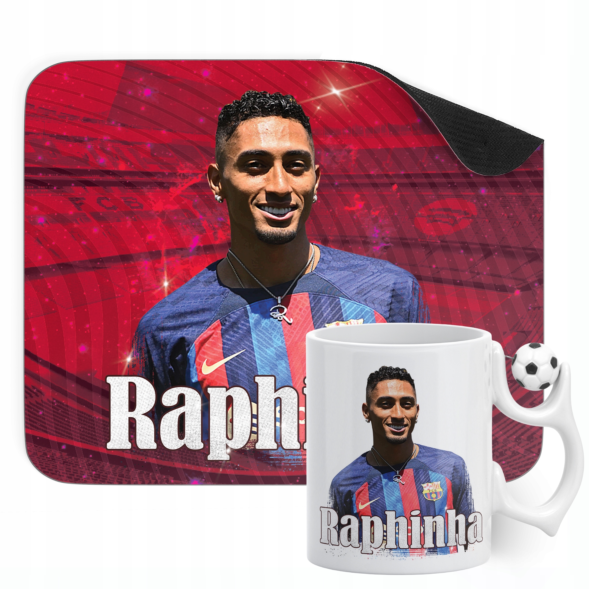 ✨ Zestaw prezentowy podkładka pod mysz i kubek piłkarski dla kibiców FC Barcelony – Idealny prezent dla fanów Raphinhi, którzy kochają piłkarskie emocje! ✨