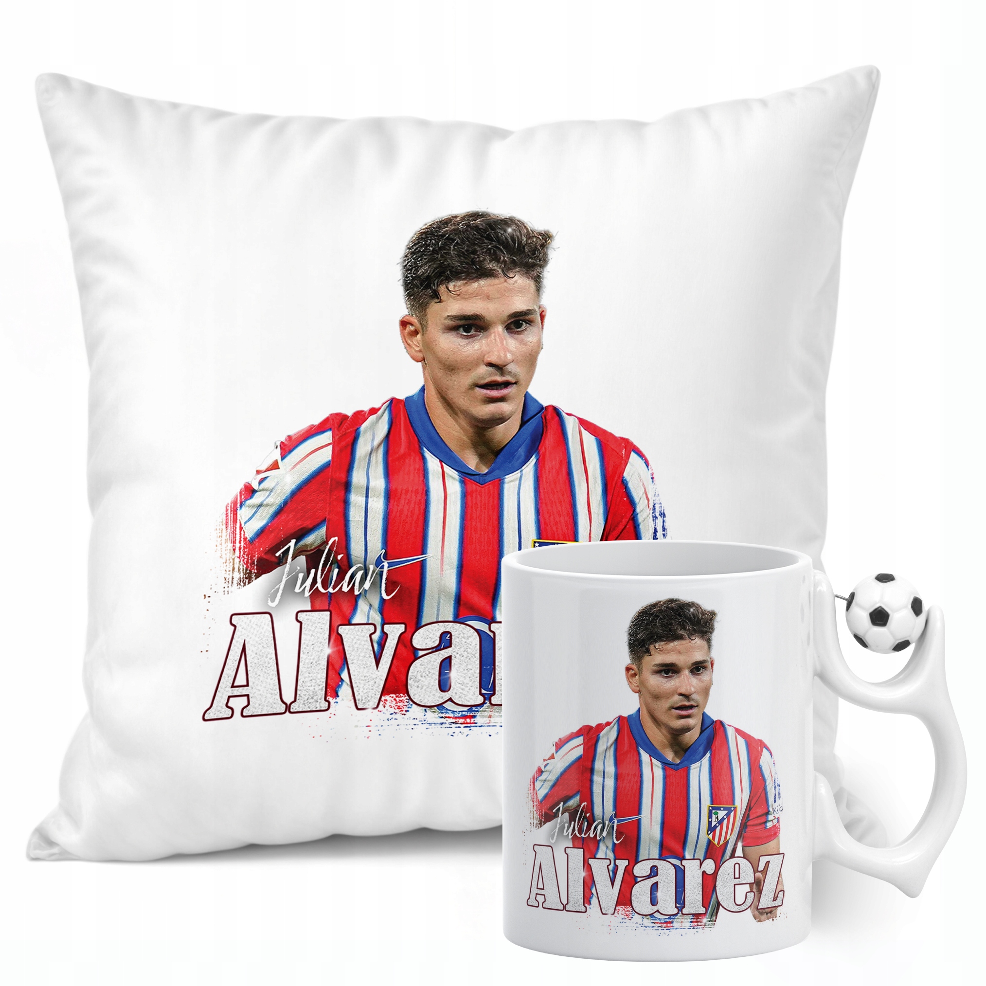 ✨ Zestaw prezentowy poduszka i kubek piłkarski dla kibiców Atlético Madryt – Idealny prezent dla fanów Juliána Álvareza, którzy kochają piłkarskie emocje! ✨