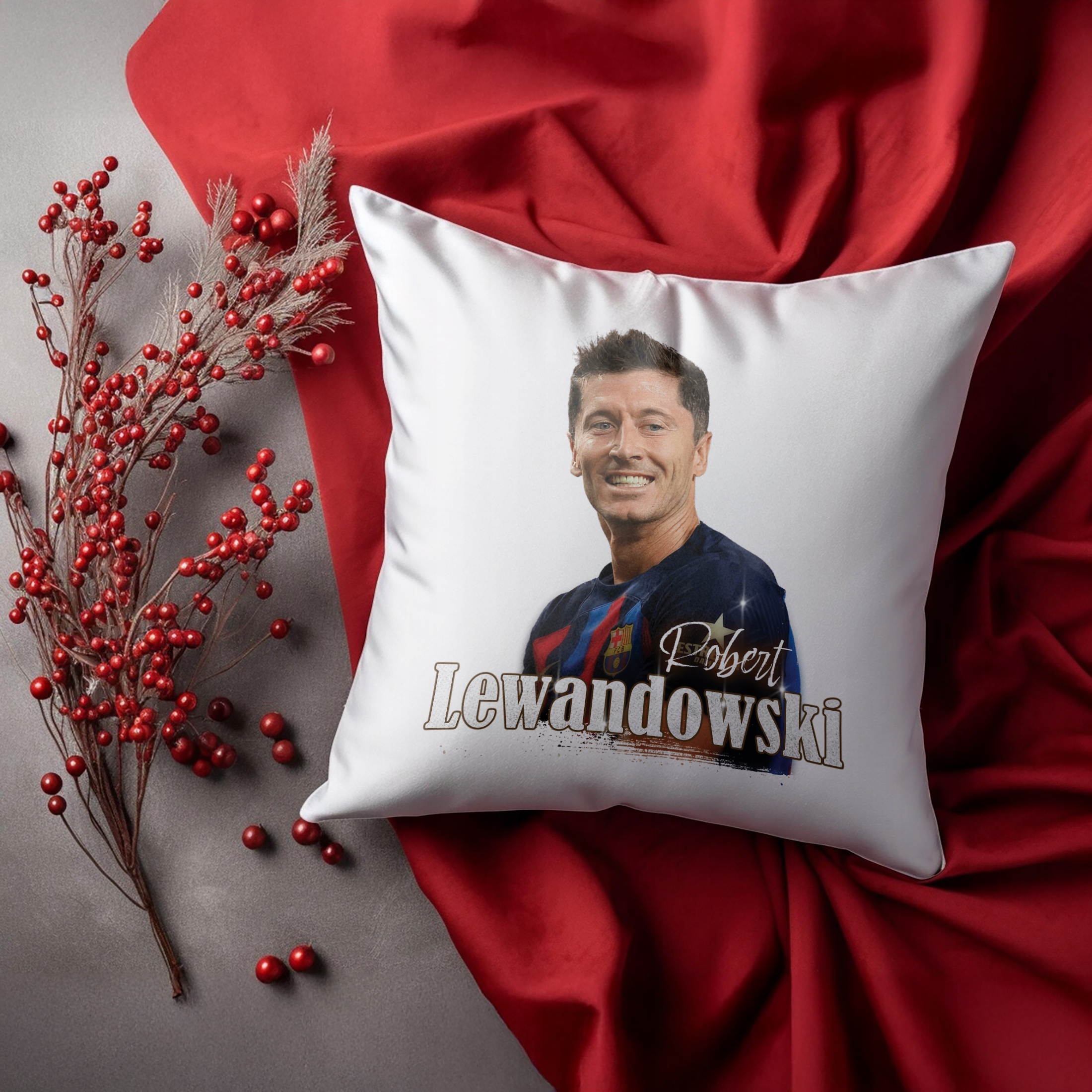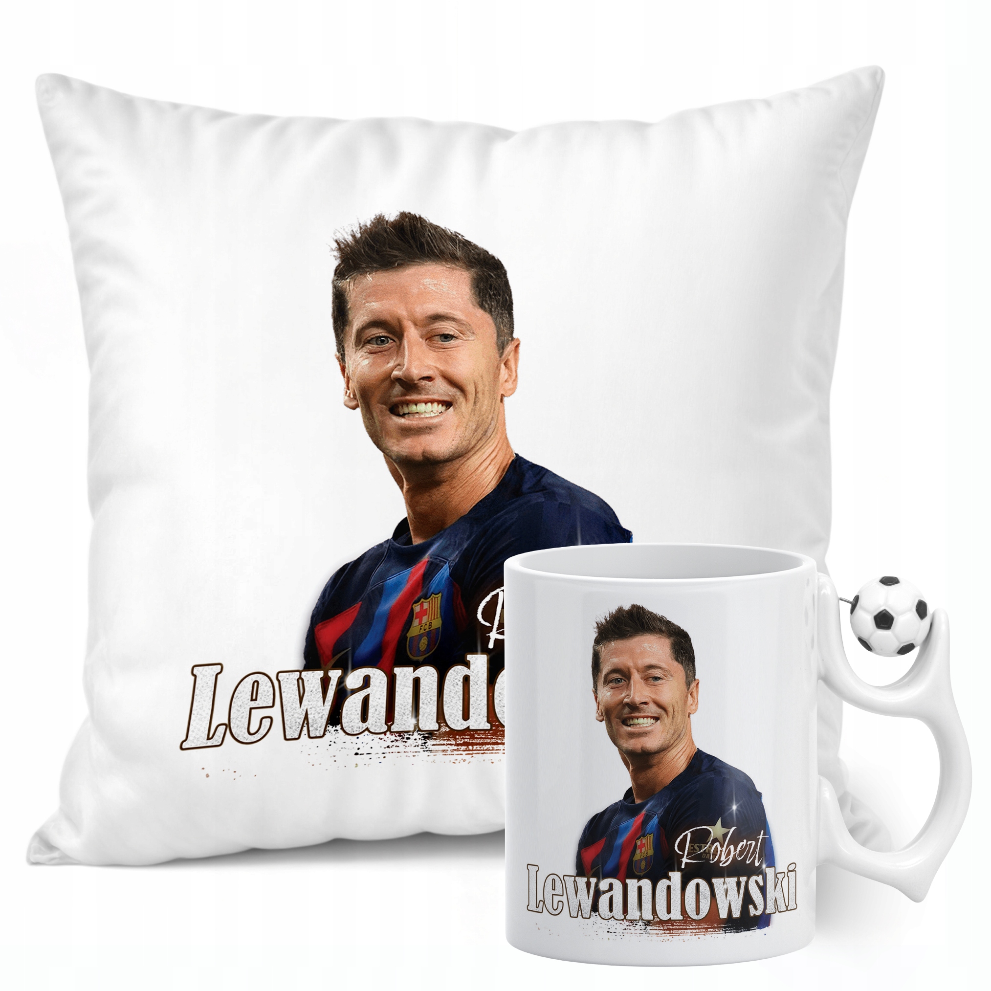 ✨ Zestaw prezentowy poduszka i kubek piłkarski dla kibiców FC Barcelony – Idealny prezent dla fanów Roberta Lewandowskiego, którzy kochają piłkarskie emocje! ✨