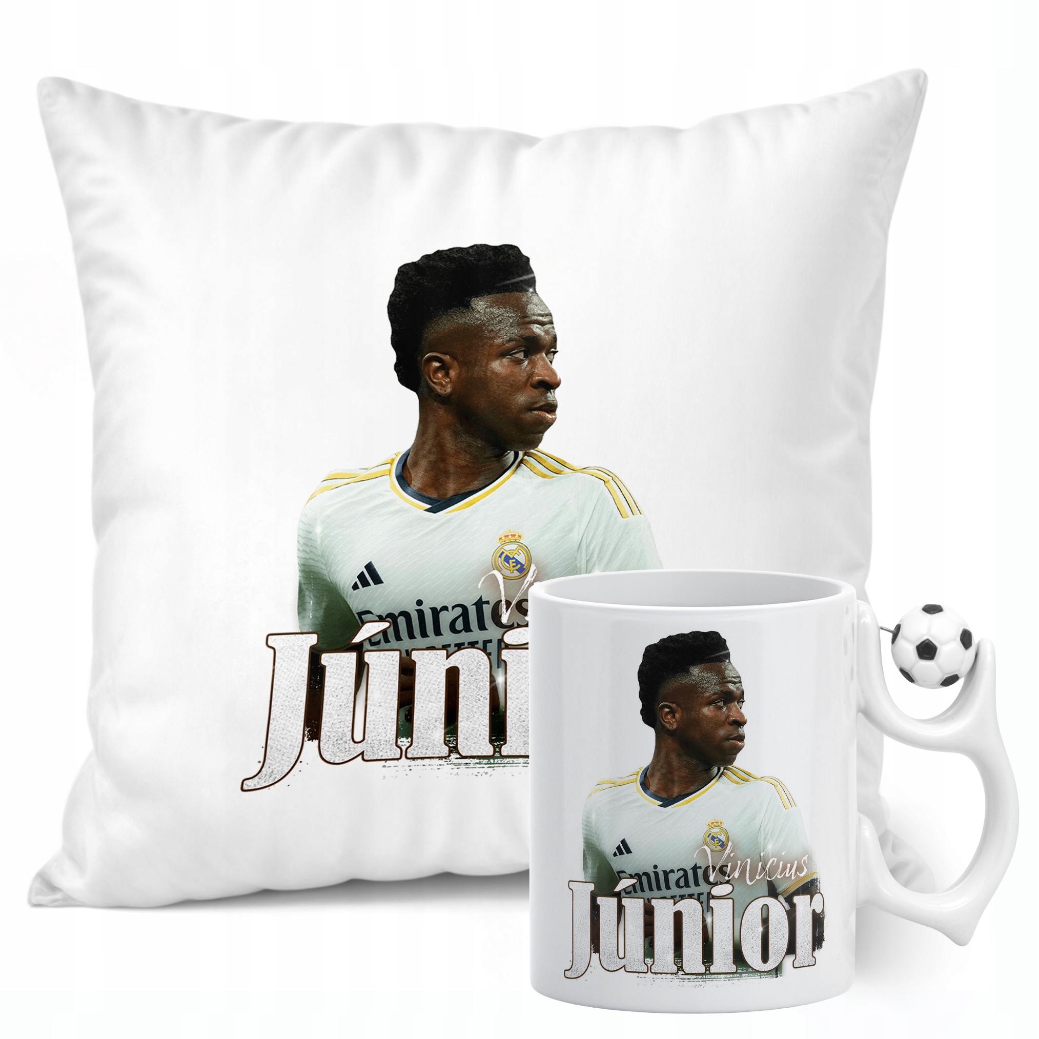 ✨ Zestaw prezentowy poduszka i kubek piłkarski dla kibiców Realu Madryt – Idealny prezent dla fanów Viniciusa Juniora, którzy kochają piłkarskie emocje! ✨
