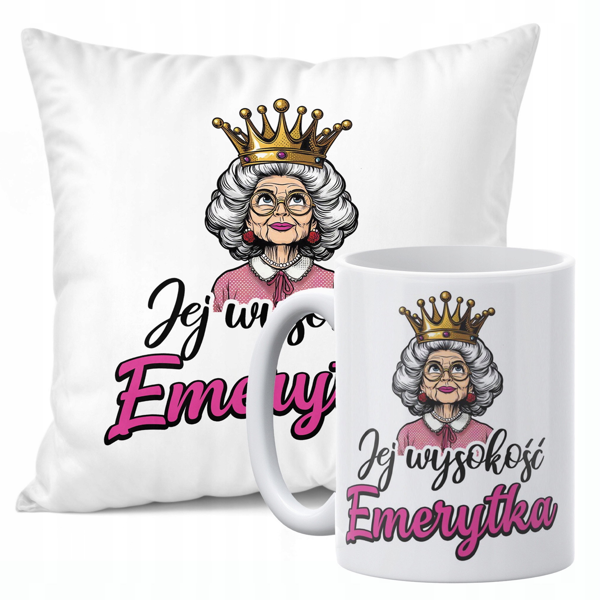 Zestaw Kubek + Poduszka 38×38 cm Emerytura Dla Emerytki Z Okazji Emerytury