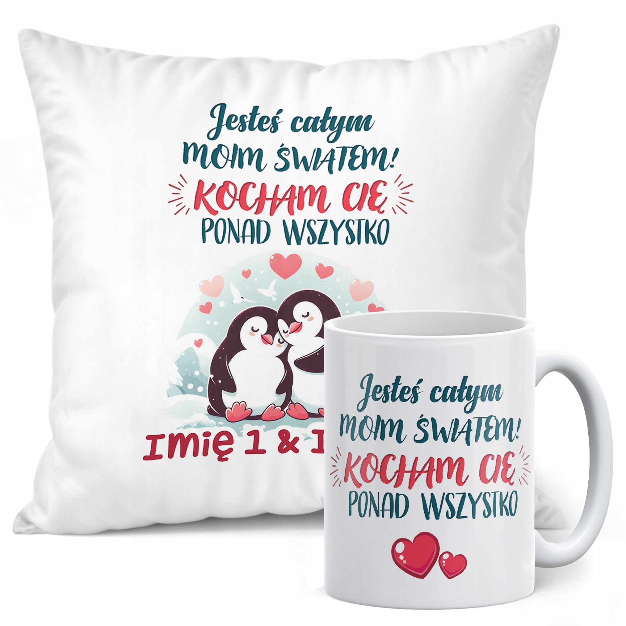 Zestaw Kubek + Poduszka 38×38 cm Walentynki Z imionami Dla Pary Prezent
