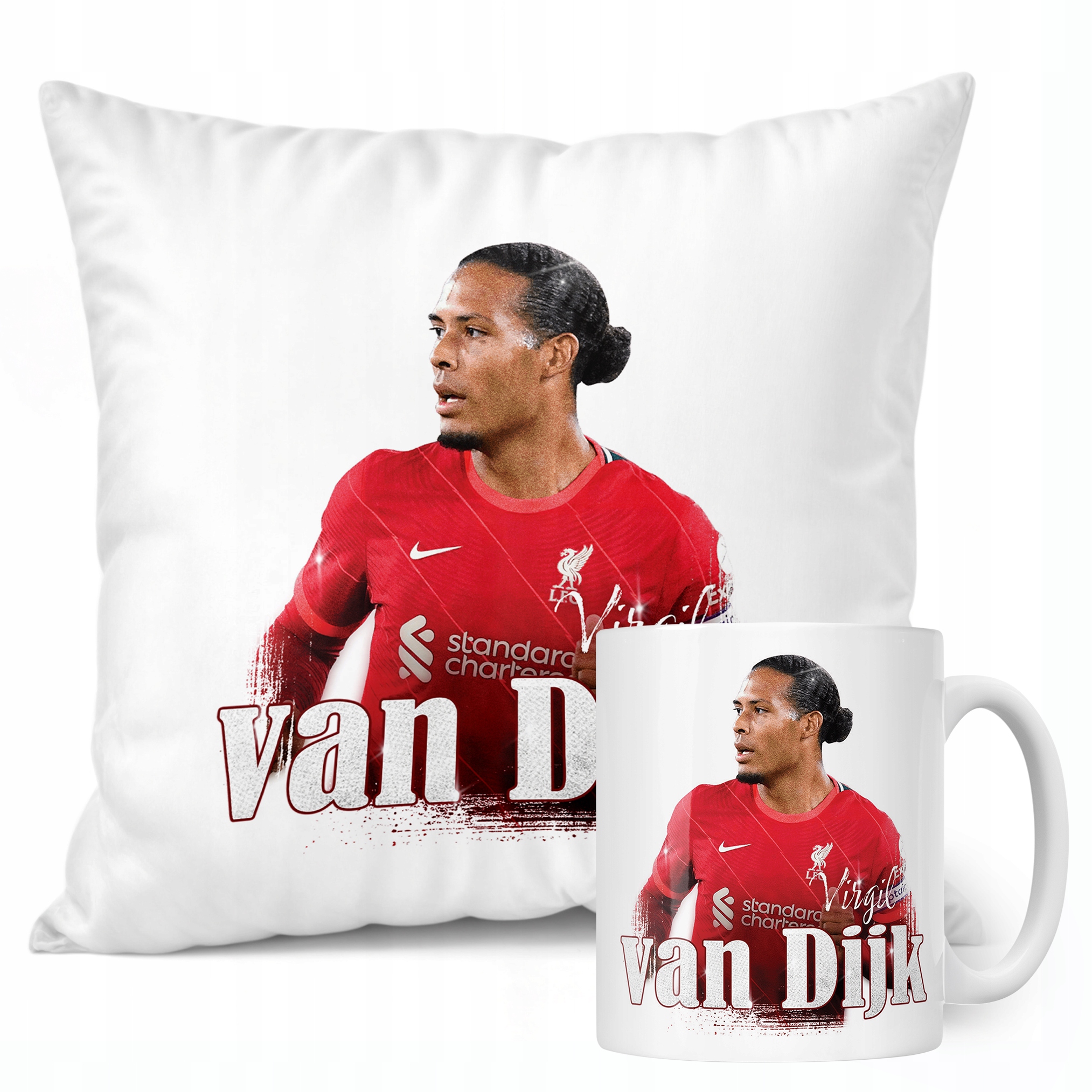 ✨ Zestaw prezentowy poduszka i kubek dla kibiców Liverpoolu – Idealny prezent dla fanów Virgila van Dijka, którzy kochają piłkarskie emocje! ✨