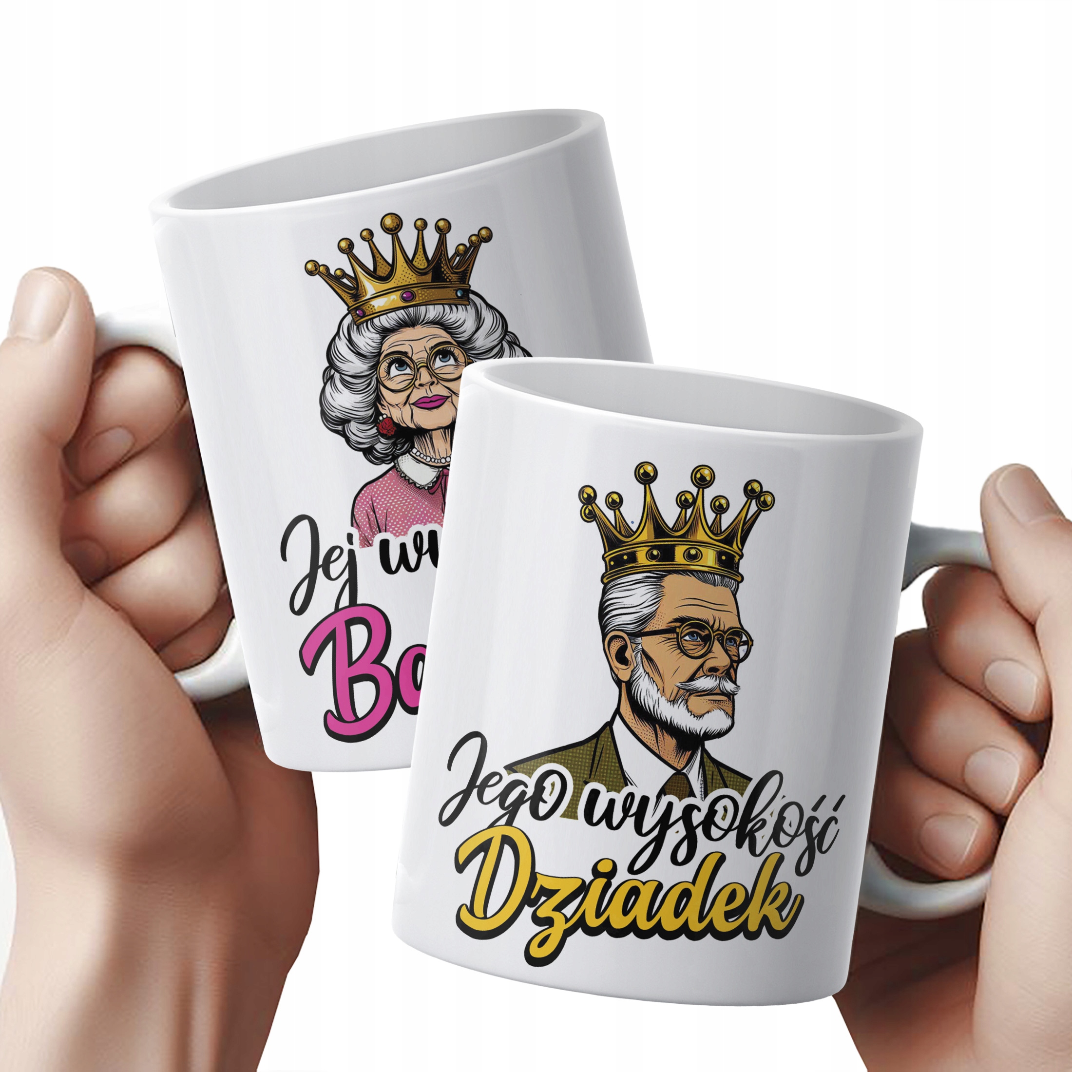 ✨ Zestaw dwóch kubków ceramicznych z okazji Dnia Babci i Dziadka - Idealny Prezent dla Jej i Jego Wysokości ✨