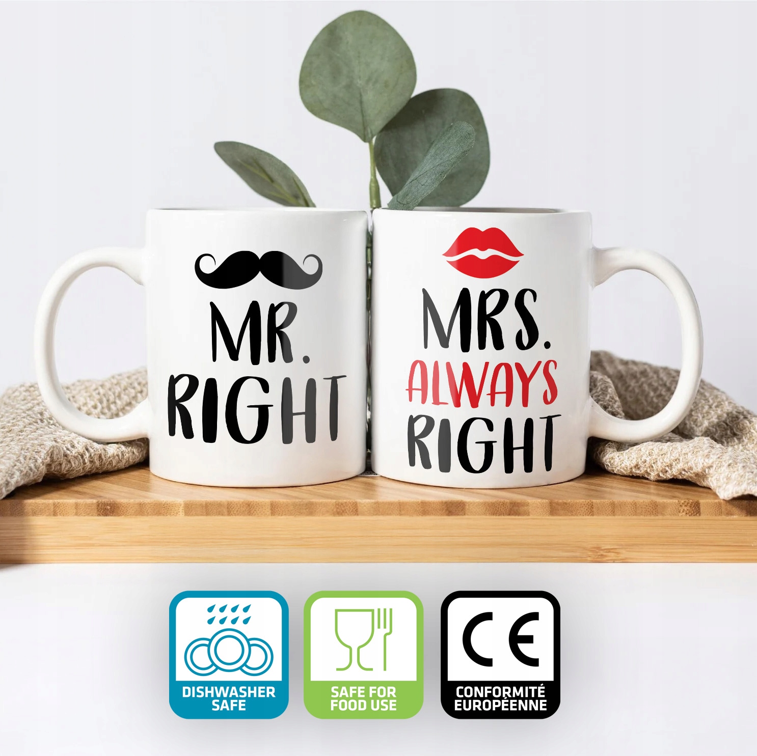 Zestaw kubków na Walentynki MR RIGHT & MRS ALWAYS RIGHT Dla Pary