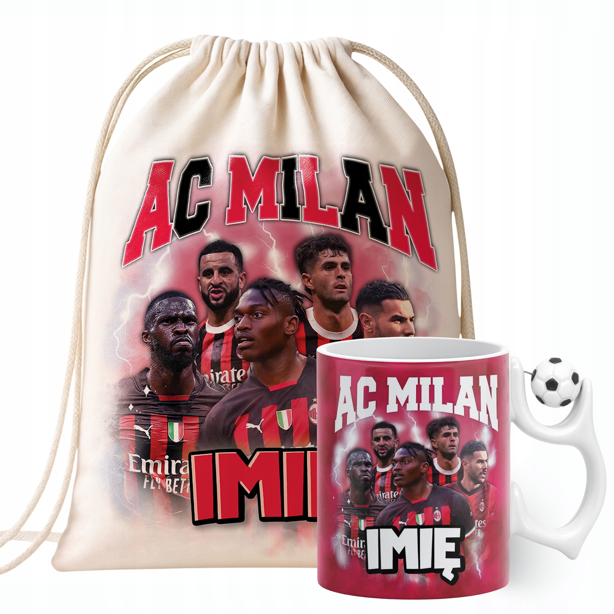 ✨ Zestaw prezentowy z imieniem plecak bawełniany i kubek piłkarski dla kibiców AC Milan – Idealny prezent dla fanów, którzy kochają piłkarskie emocje! ✨