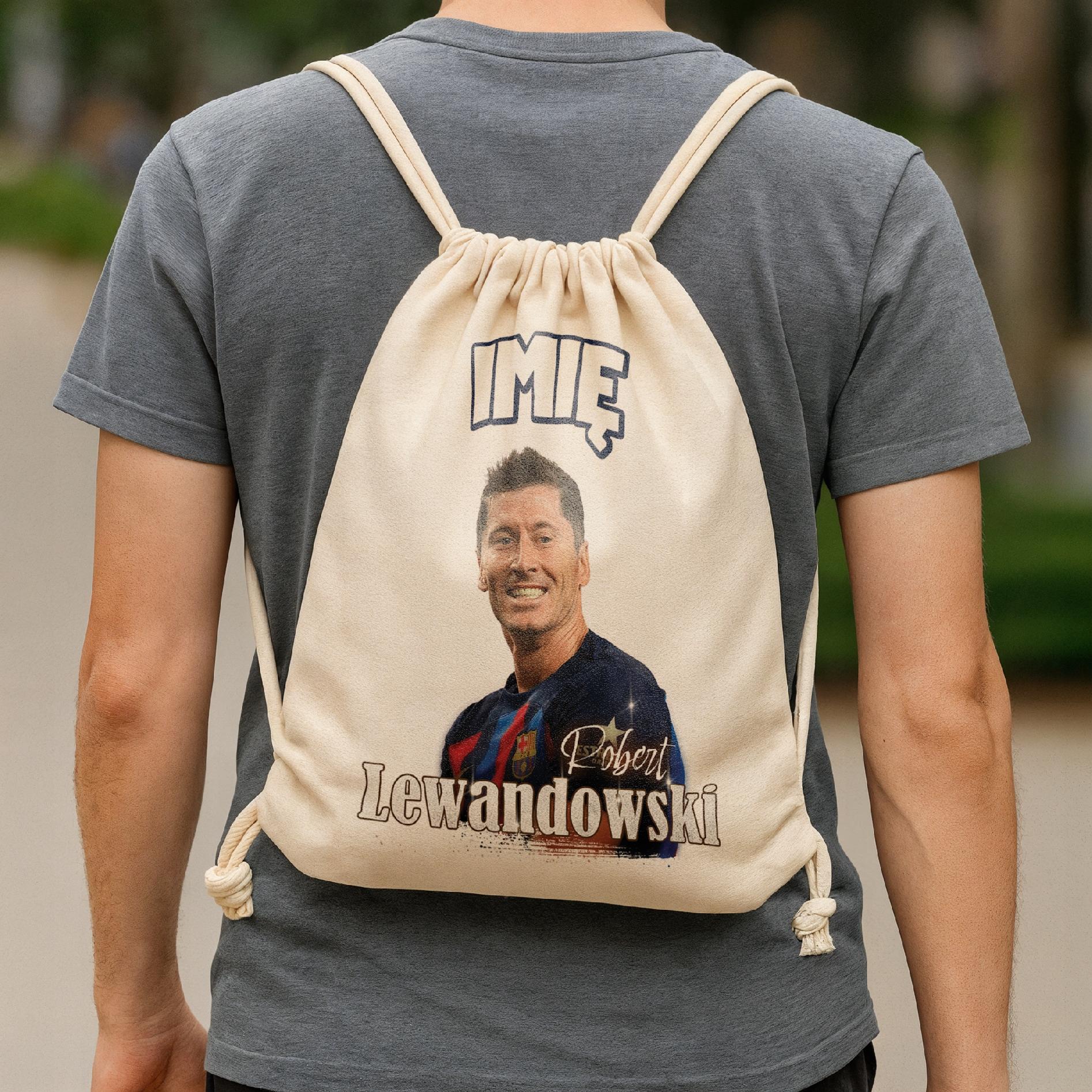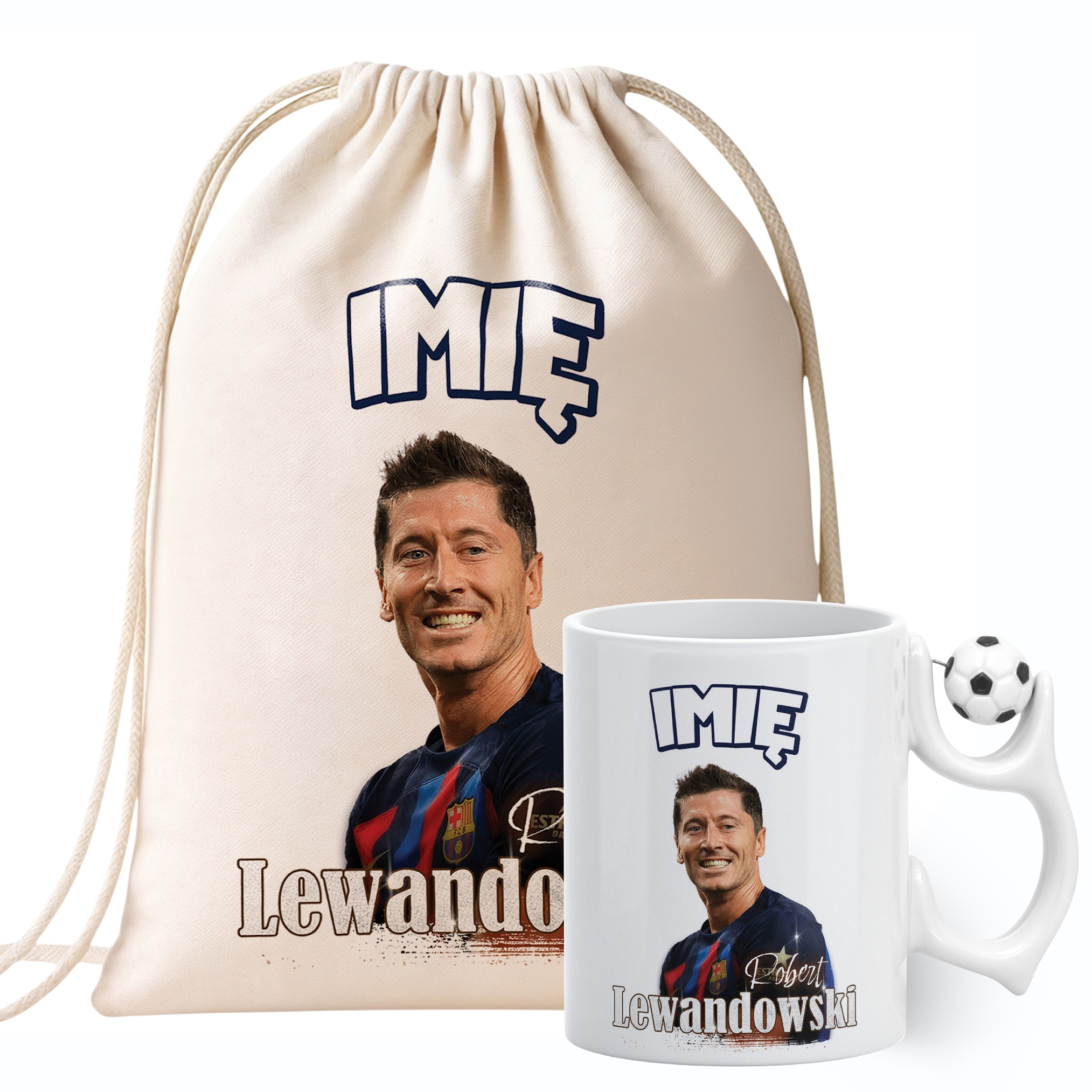 ✨ Zestaw prezentowy z imieniem plecak bawełniany i kubek piłkarski dla kibiców FC Barcelony – Idealny prezent dla fanów Roberta Lewandowskiego, którzy kochają piłkarskie emocje! ✨