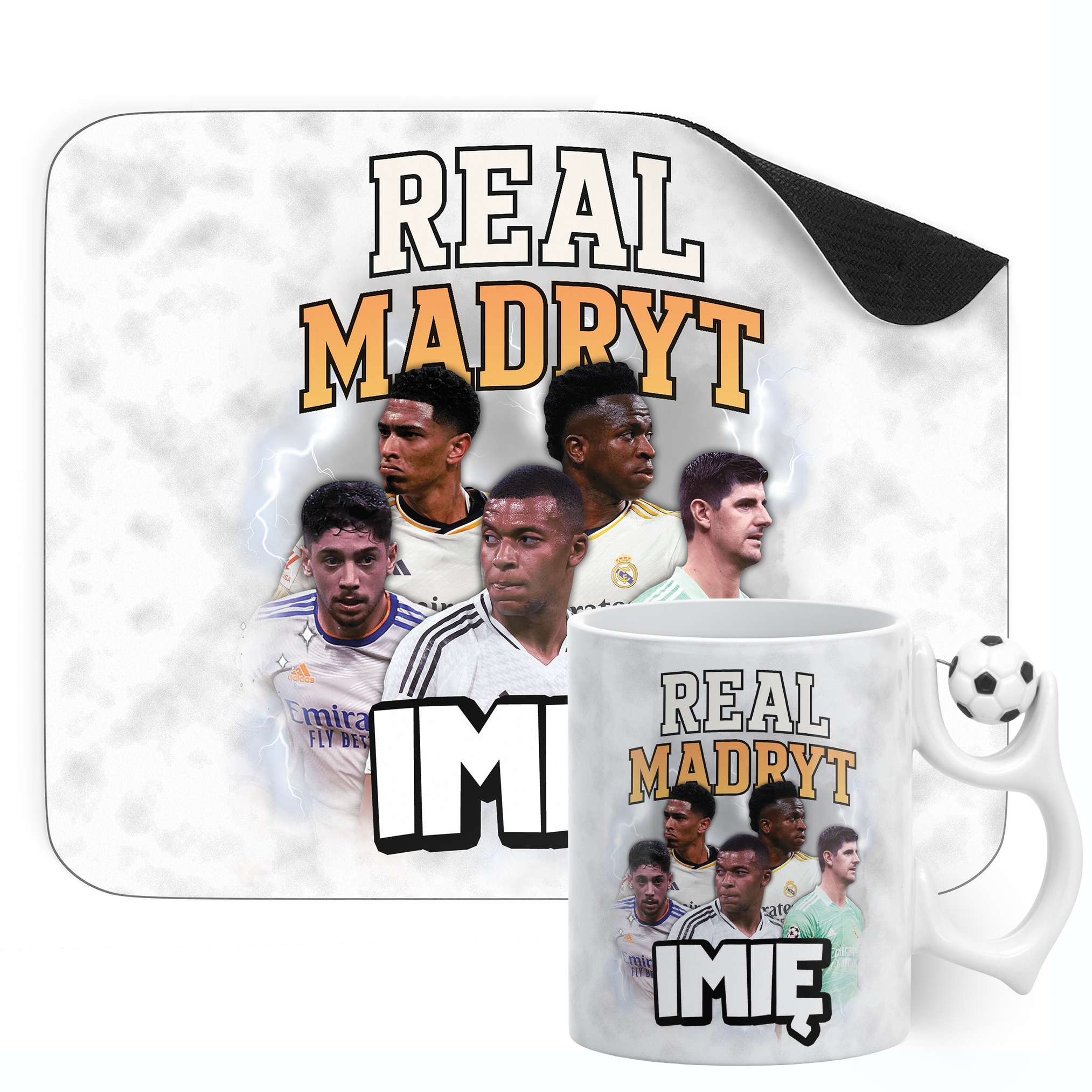 ✨ Zestaw prezentowy z imieniem podkładka pod mysz i kubek piłkarski dla kibiców Realu Madryt – Idealny prezent dla fanów, którzy kochają piłkarskie emocje! ✨