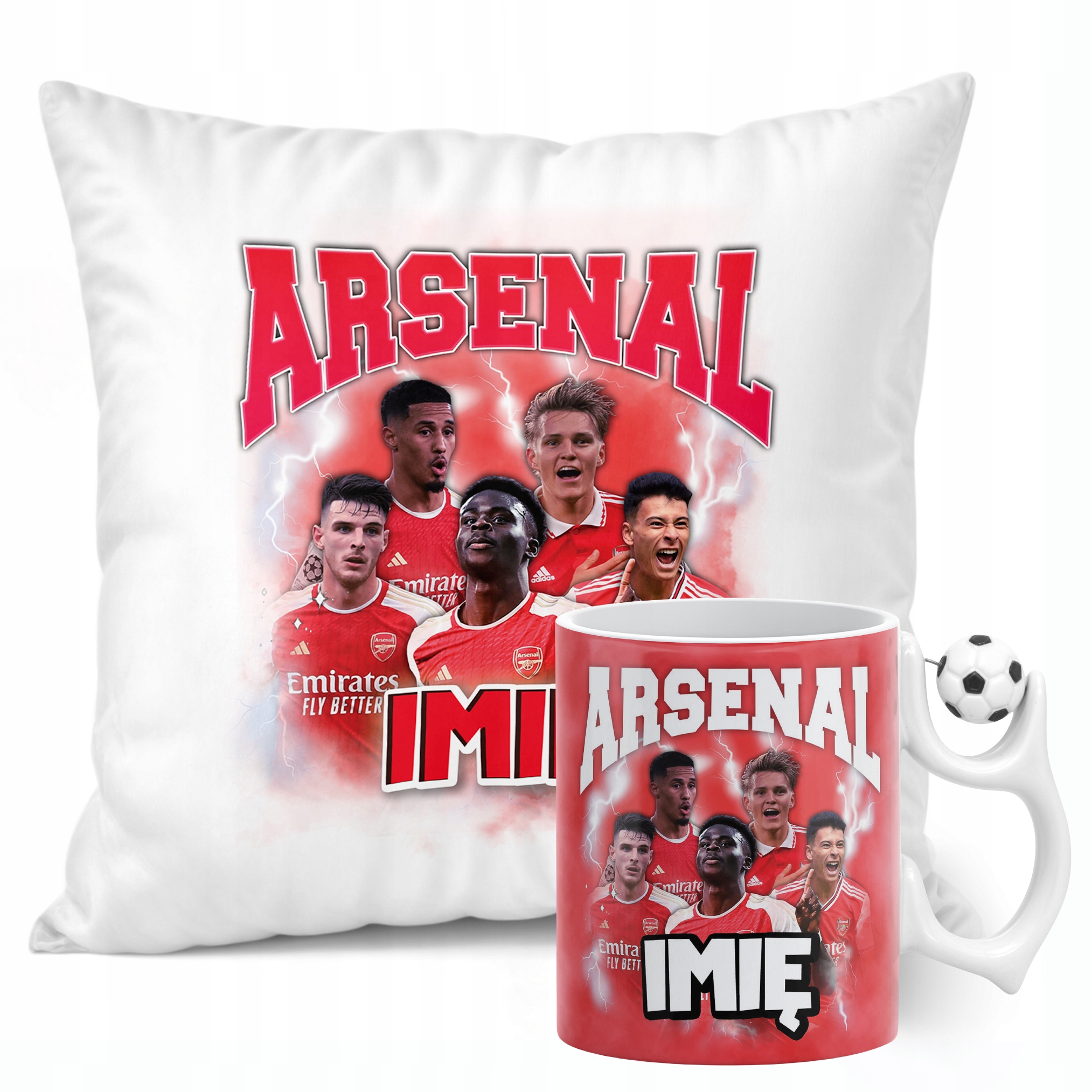 ✨ Zestaw prezentowy z imieniem poduszka i kubek piłkarski dla kibiców Arsenalu – Idealny prezent dla fanów, którzy kochają piłkarskie emocje! ✨