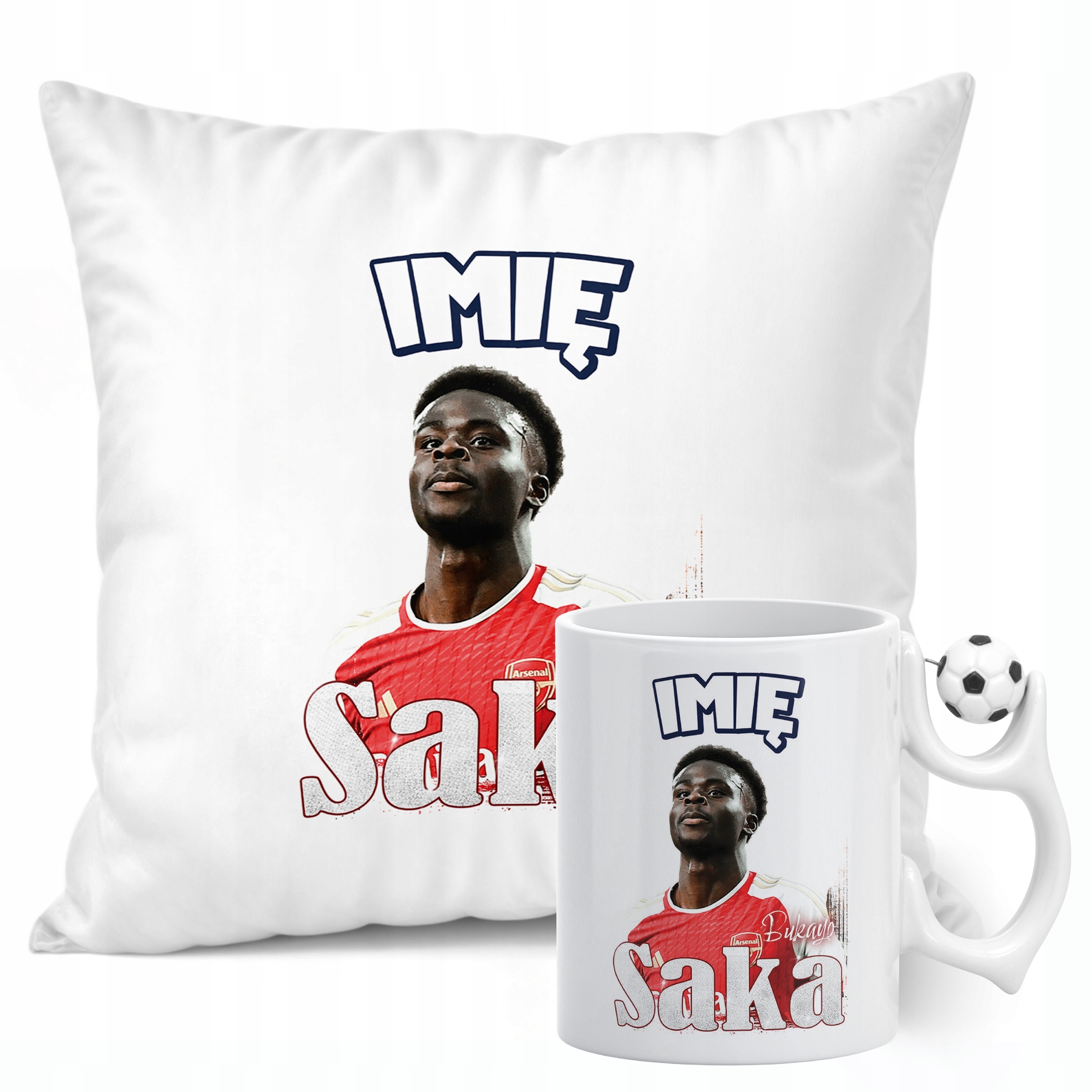 ✨ Zestaw prezentowy z imieniem poduszka i kubek piłkarski dla kibiców Arsenalu – Idealny prezent dla fanów Bukayo Saki, którzy kochają piłkarskie emocje! ✨