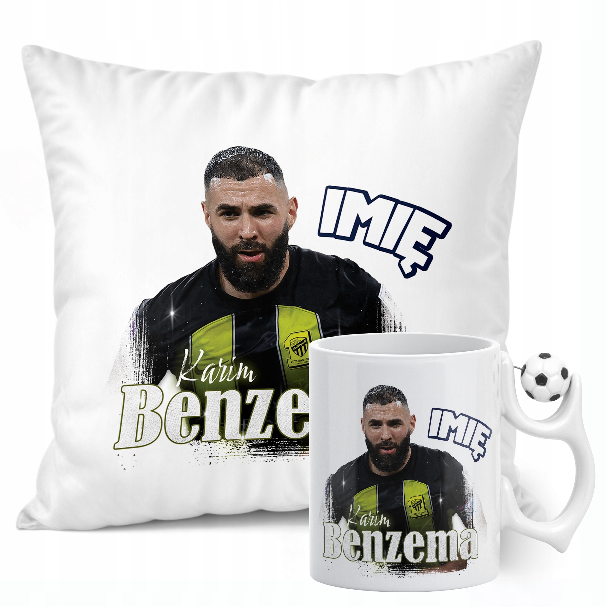 ✨ Zestaw prezentowy z imieniem poduszka i kubek piłkarski dla kibiców Al-Ittihad – Idealny prezent dla fanów Karima Benzemy, którzy kochają piłkarskie emocje! ✨