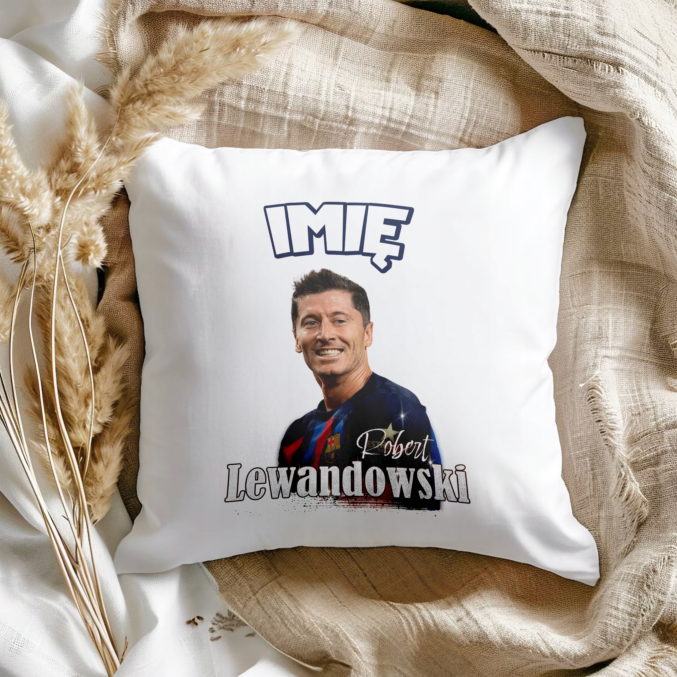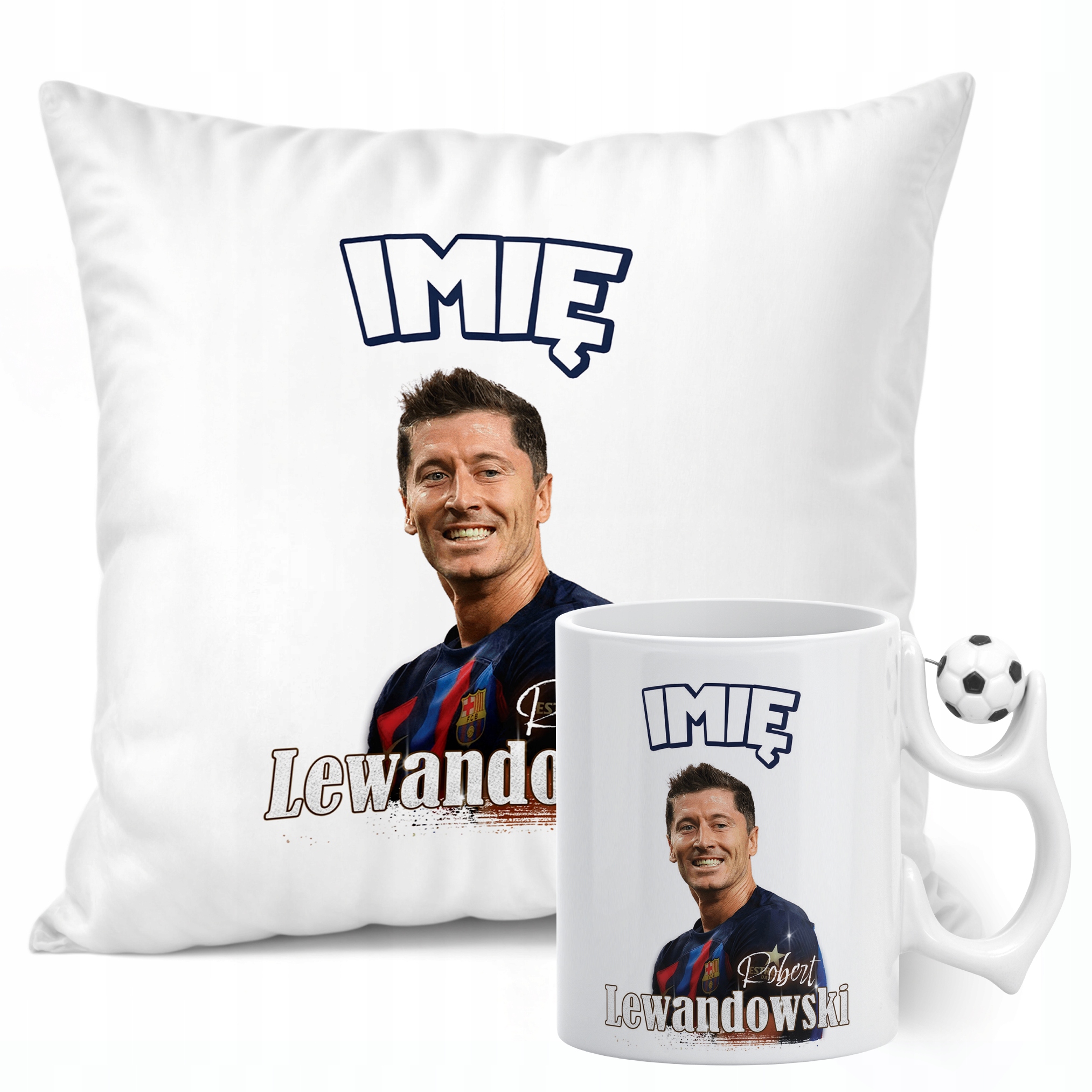 ✨ Zestaw prezentowy z imieniem poduszka i kubek piłkarski dla kibiców FC Barcelony – Idealny prezent dla fanów Roberta Lewandowskiego, którzy kochają piłkarskie emocje! ✨