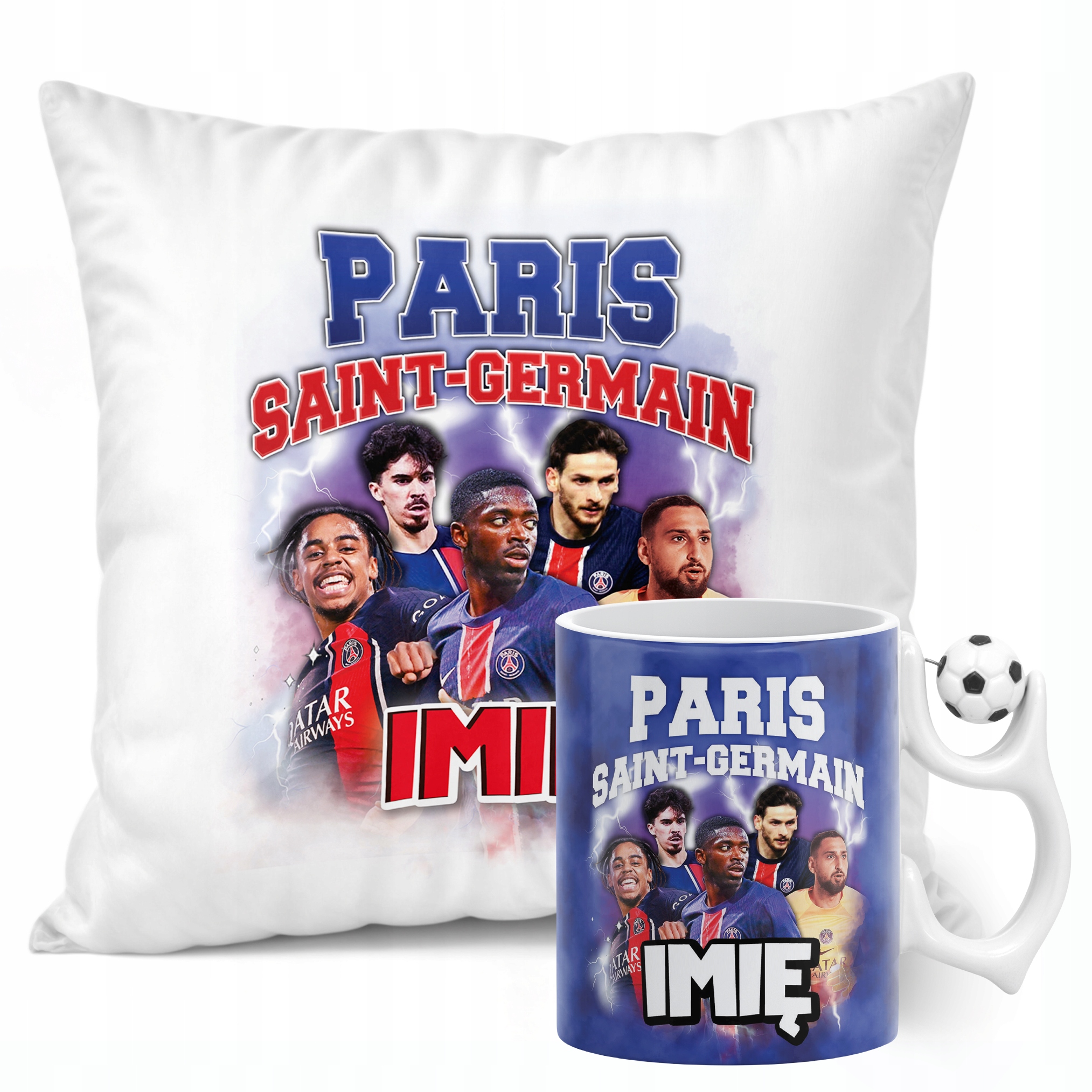 ✨ Zestaw prezentowy z imieniem poduszka i kubek piłkarski dla kibiców Paris Saint-Germain – Idealny prezent dla fanów, którzy kochają piłkarskie emocje! ✨