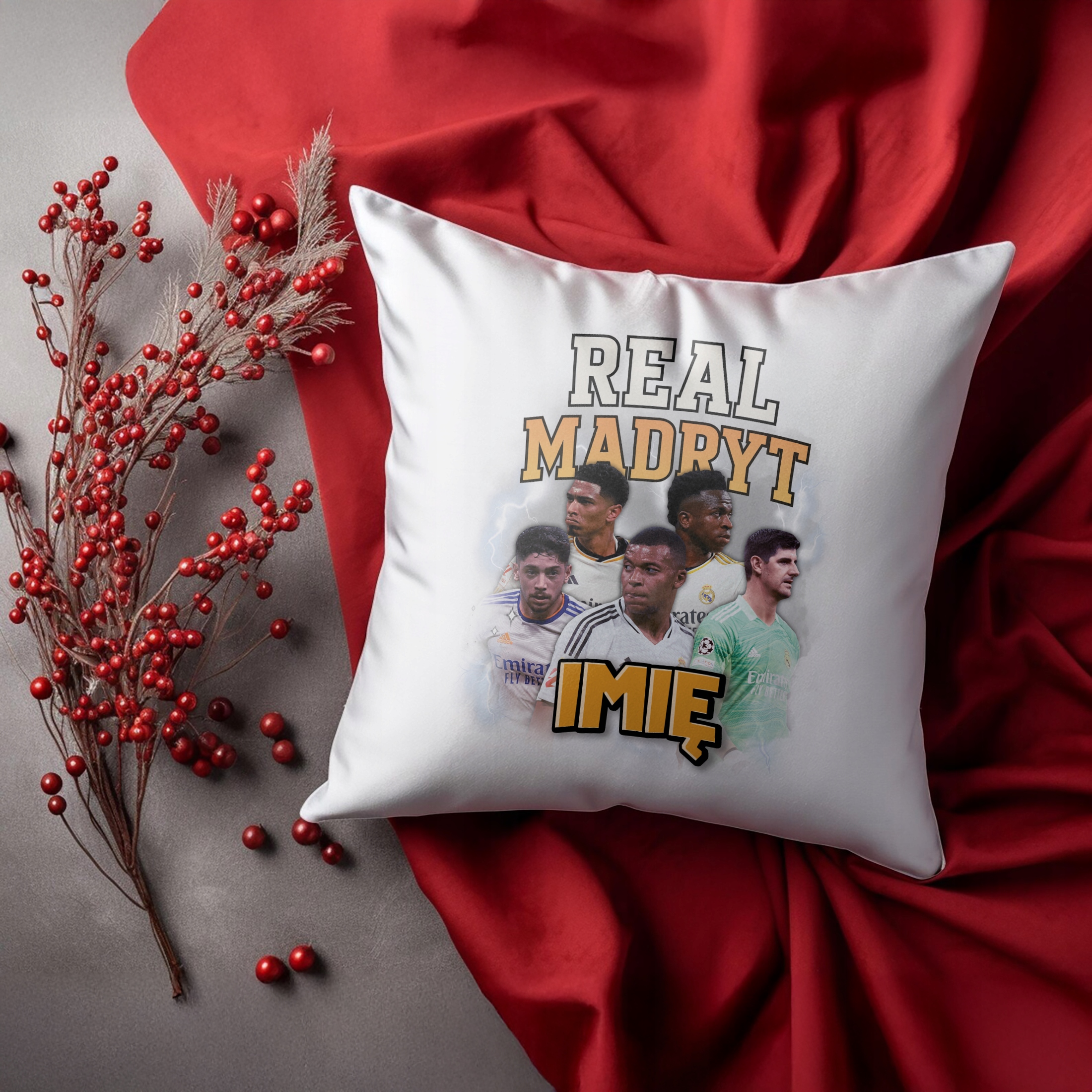 ✨ Zestaw prezentowy z imieniem poduszka i kubek piłkarski dla kibiców Realu Madryt – Idealny prezent dla fanów, którzy kochają piłkarskie emocje! ✨