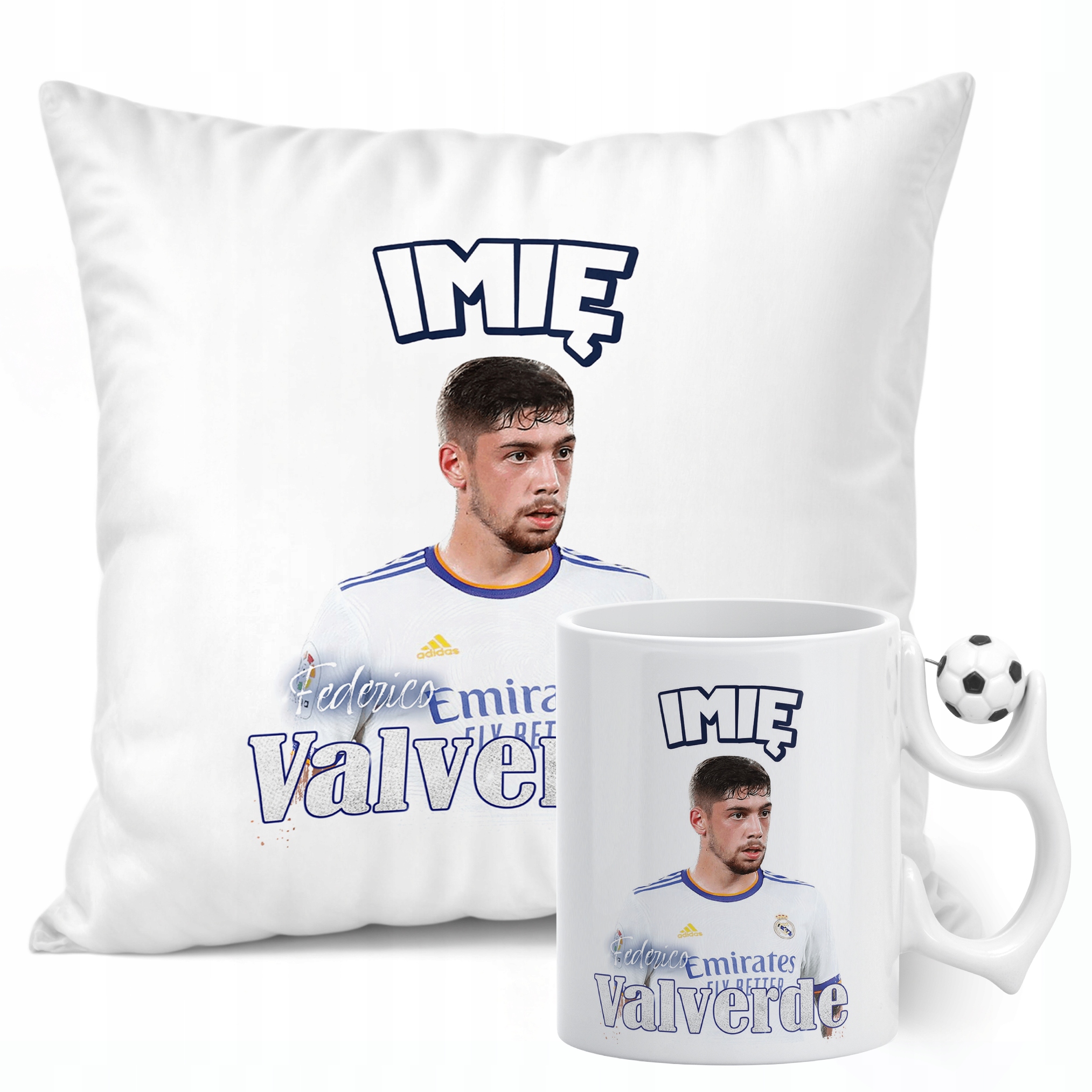 ✨ Zestaw prezentowy z imieniem poduszka i kubek piłkarski dla kibiców Realu Madryt – Idealny prezent dla fanów Federico Valverde, którzy kochają piłkarskie emocje! ✨