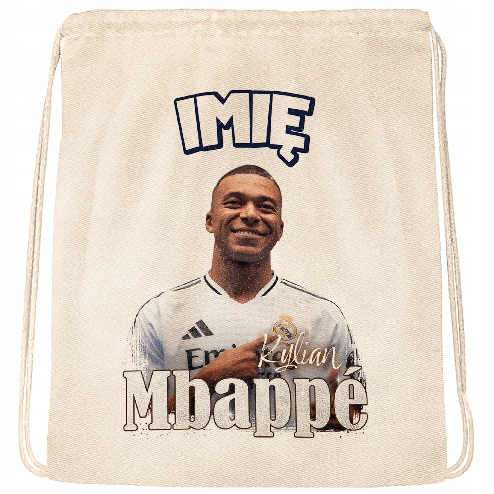 ✨ Zestaw prezentowy z imieniem plecak bawełniany i kubek dla kibiców Realu Madryt – Idealny prezent dla fanów Kyliana Mbappé, którzy kochają piłkarskie emocje! ✨