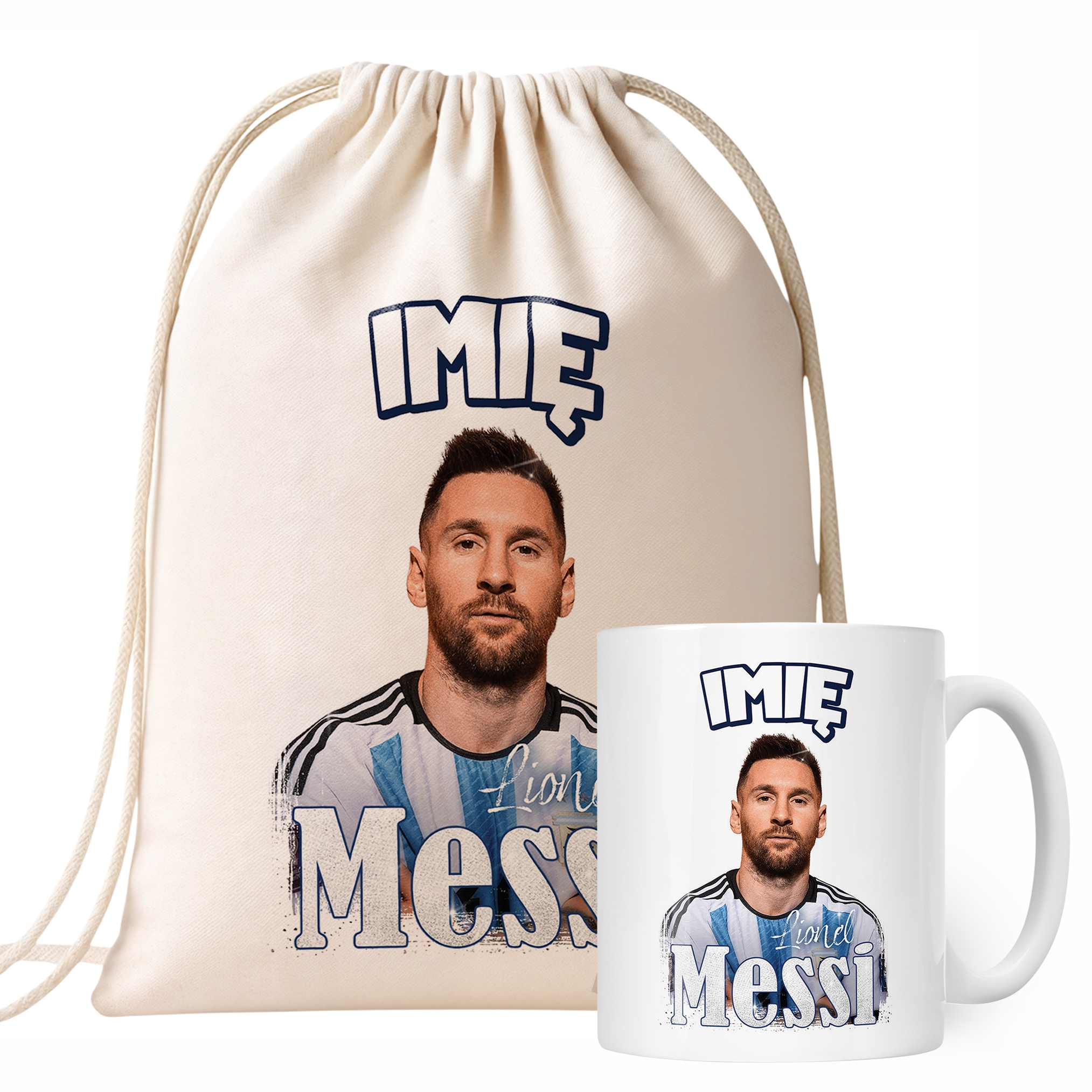✨ Zestaw prezentowy z imieniem plecak bawełniany i kubek dla kibiców – Idealny prezent dla fanów Lionela Messiego, którzy kochają piłkarskie emocje! ✨