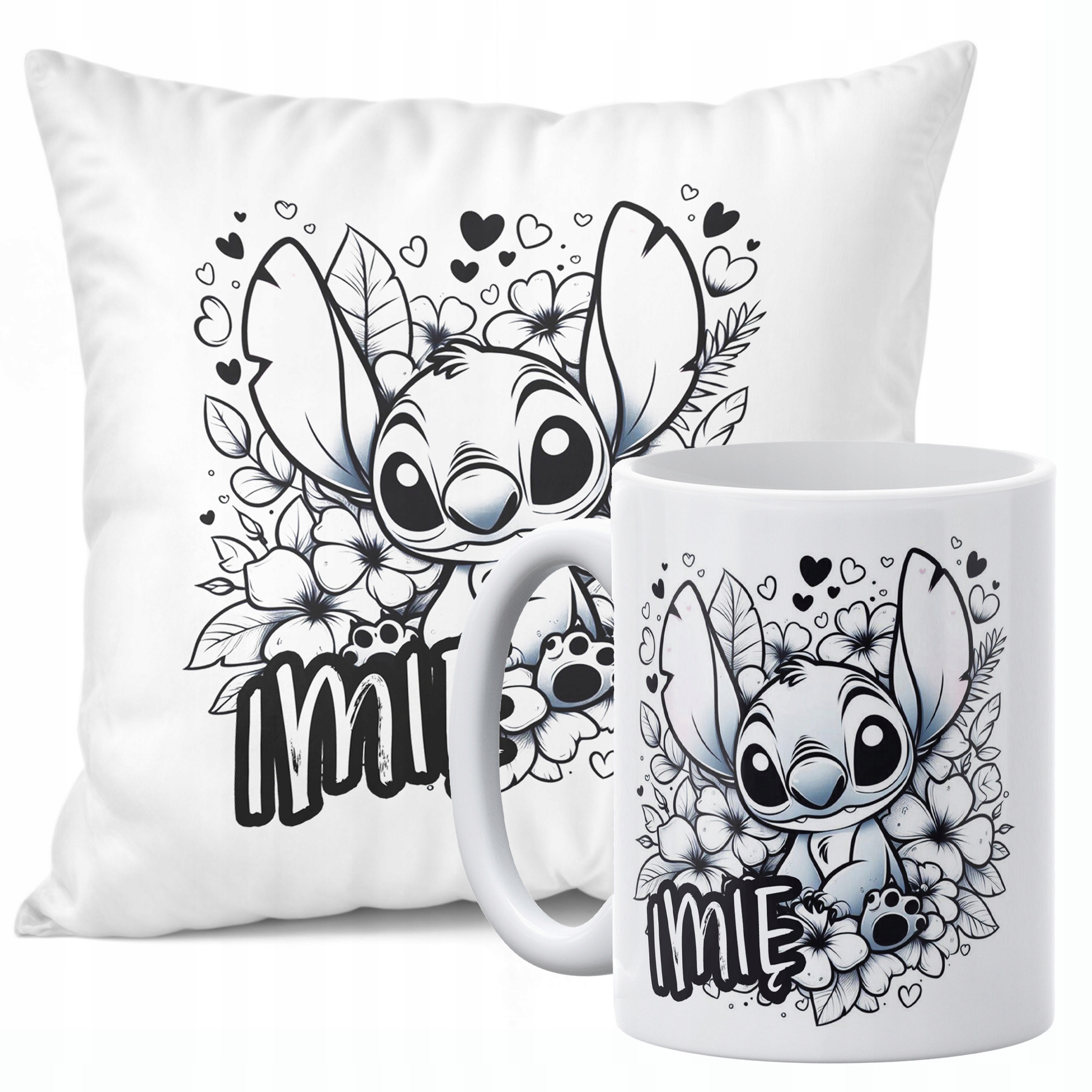 Zestaw Personalizowany Kubek + Poduszka 38×38 cm Dla Fanów Lilo i Sticz