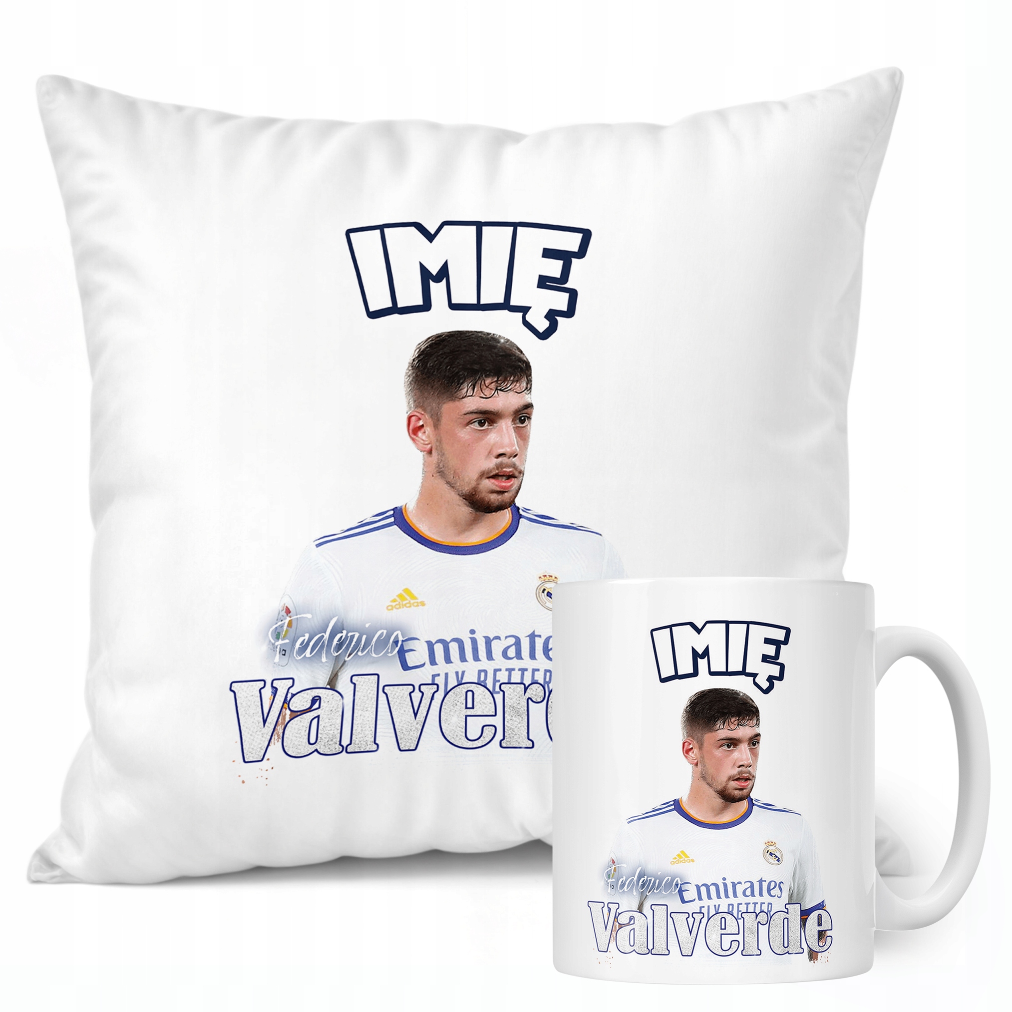 ✨ Zestaw prezentowy z imieniem poduszka i kubek dla kibiców Realu Madryt – Idealny prezent dla fanów Federico Valverde, którzy kochają piłkarskie emocje! ✨