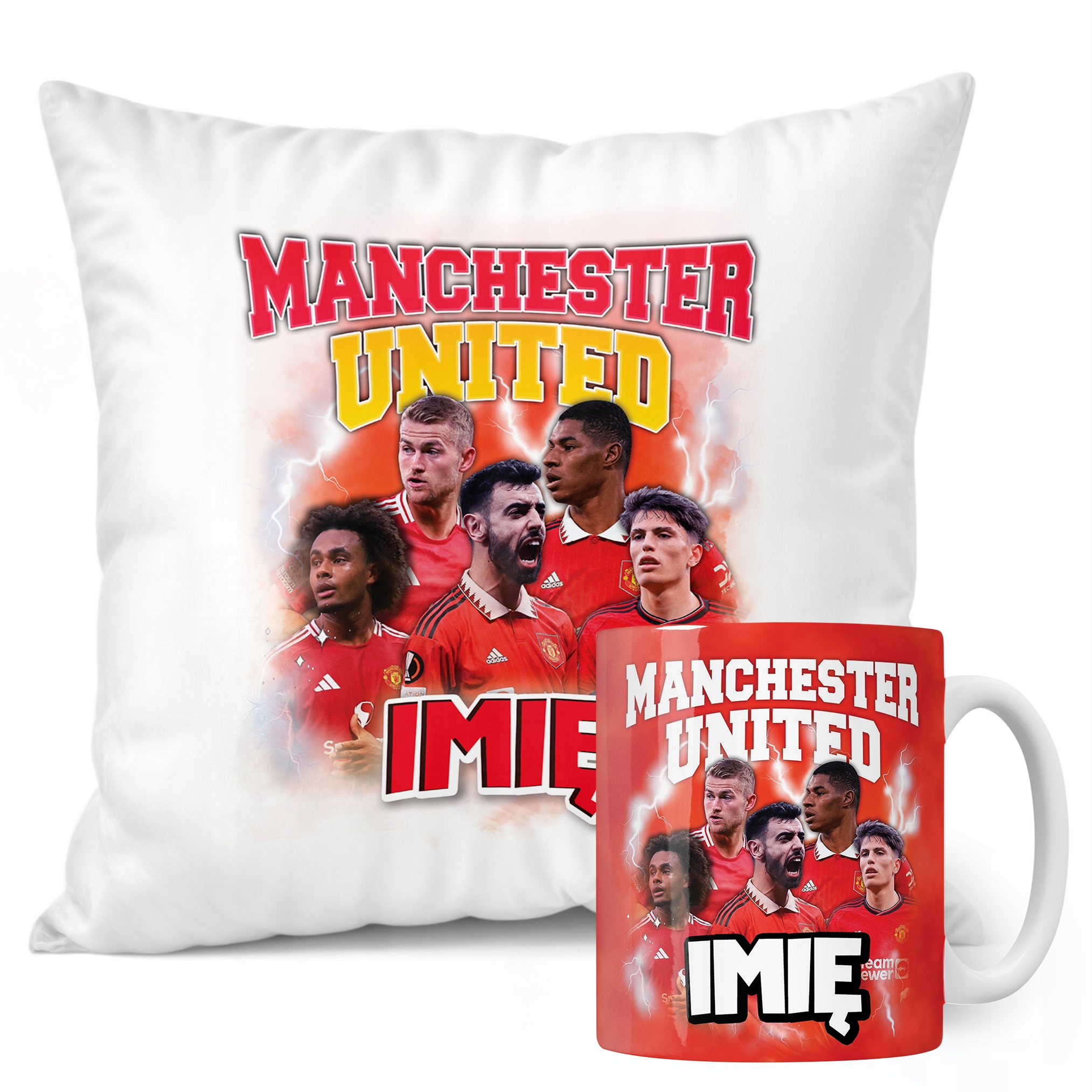 ✨ Zestaw prezentowy z imieniem poduszka i kubek dla kibiców Manchesteru United – Idealny prezent dla fanów, którzy kochają piłkarskie emocje! ✨