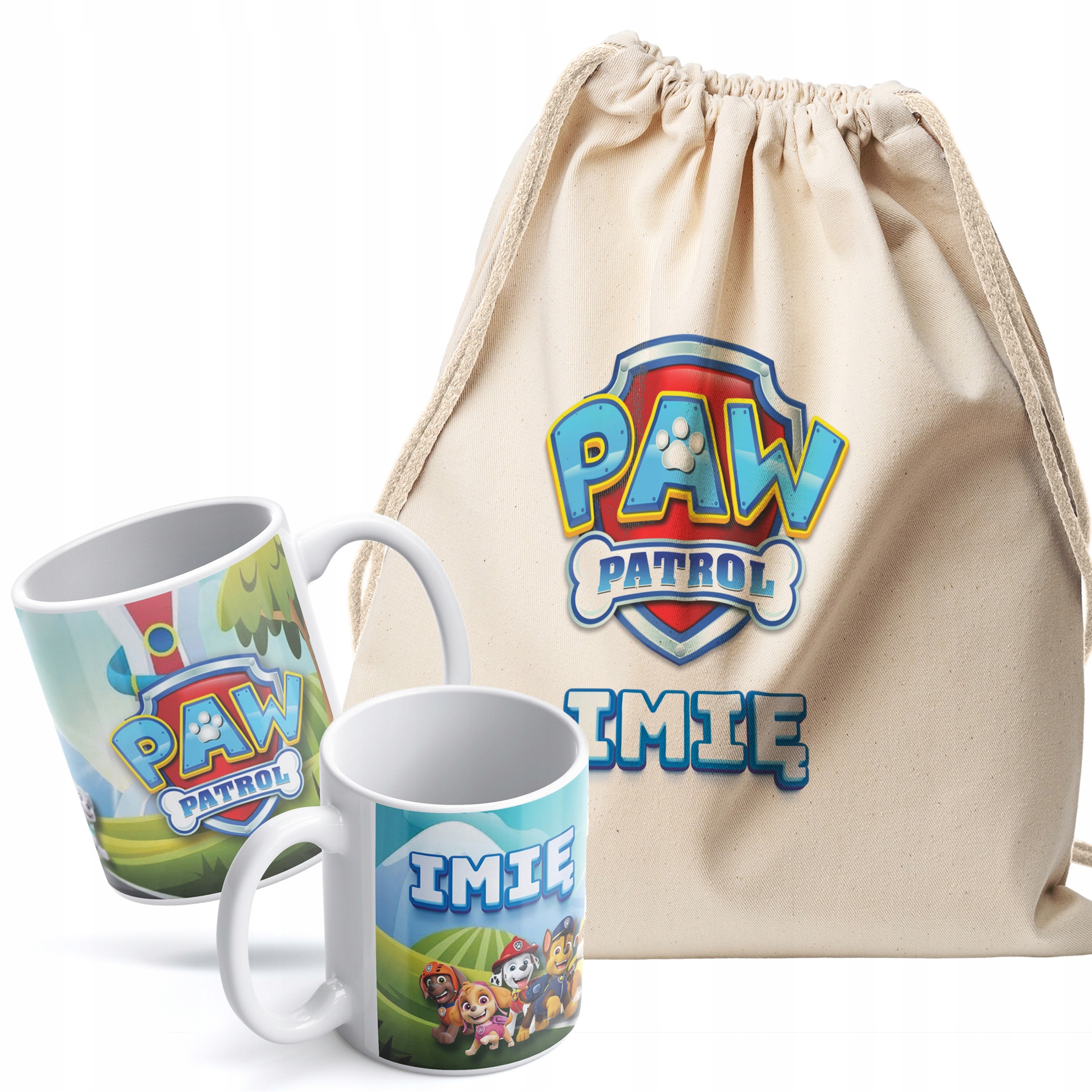 ✨ Zestaw dla fanów bajki Psi Patrol — Kubek personalizowany + Plecak bawełniany ✨