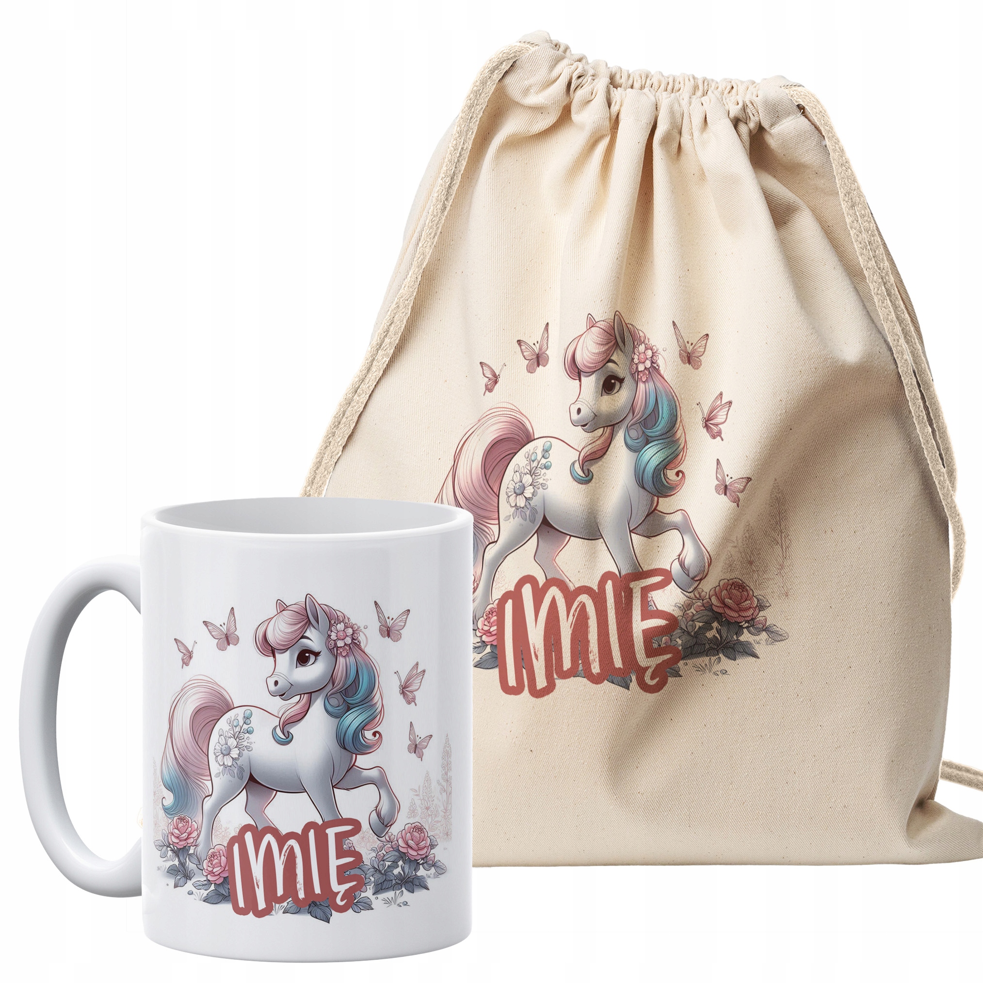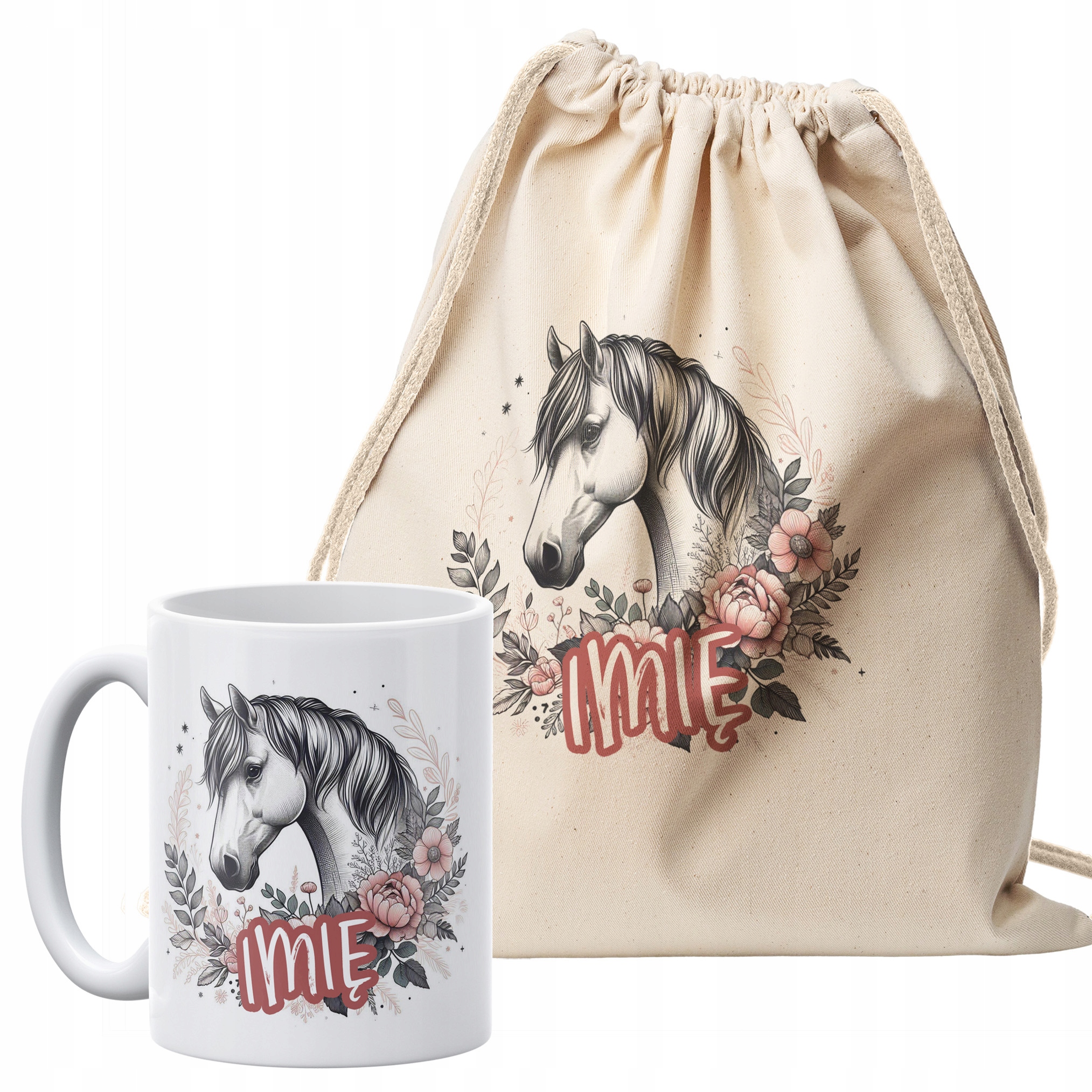 ✨ Zestaw personalizowany z koniem dla dzieci i młodzieży — Kubek + Plecak bawełniany ✨