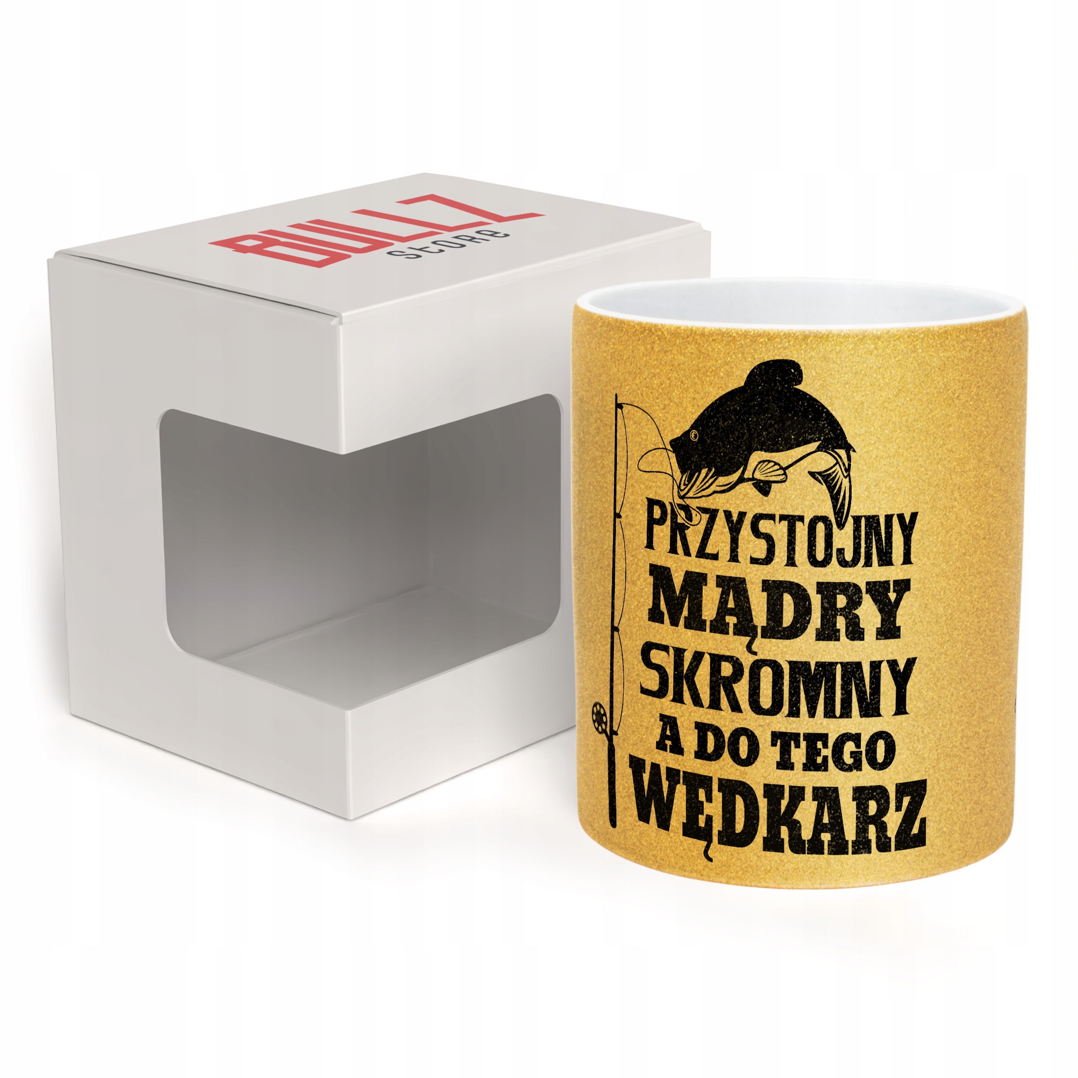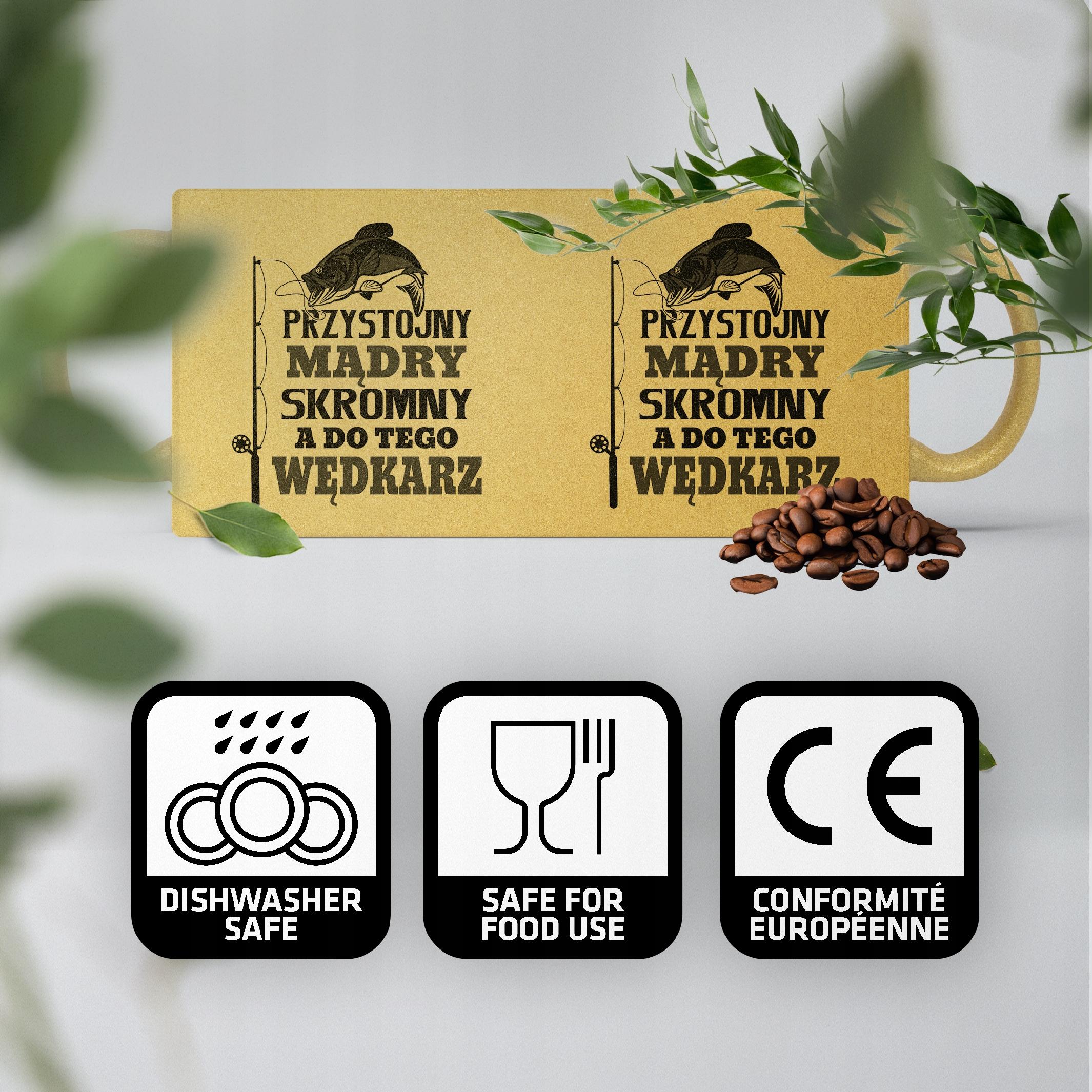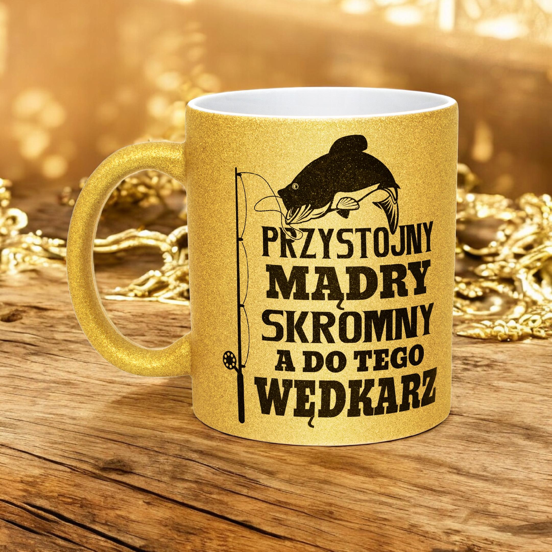 ✨ Złoty brokatowy kubek 330 ml Dla Wędkarza – Piękny i elegancki prezent, który zachwycie każdą obdarowaną osobę. ✨