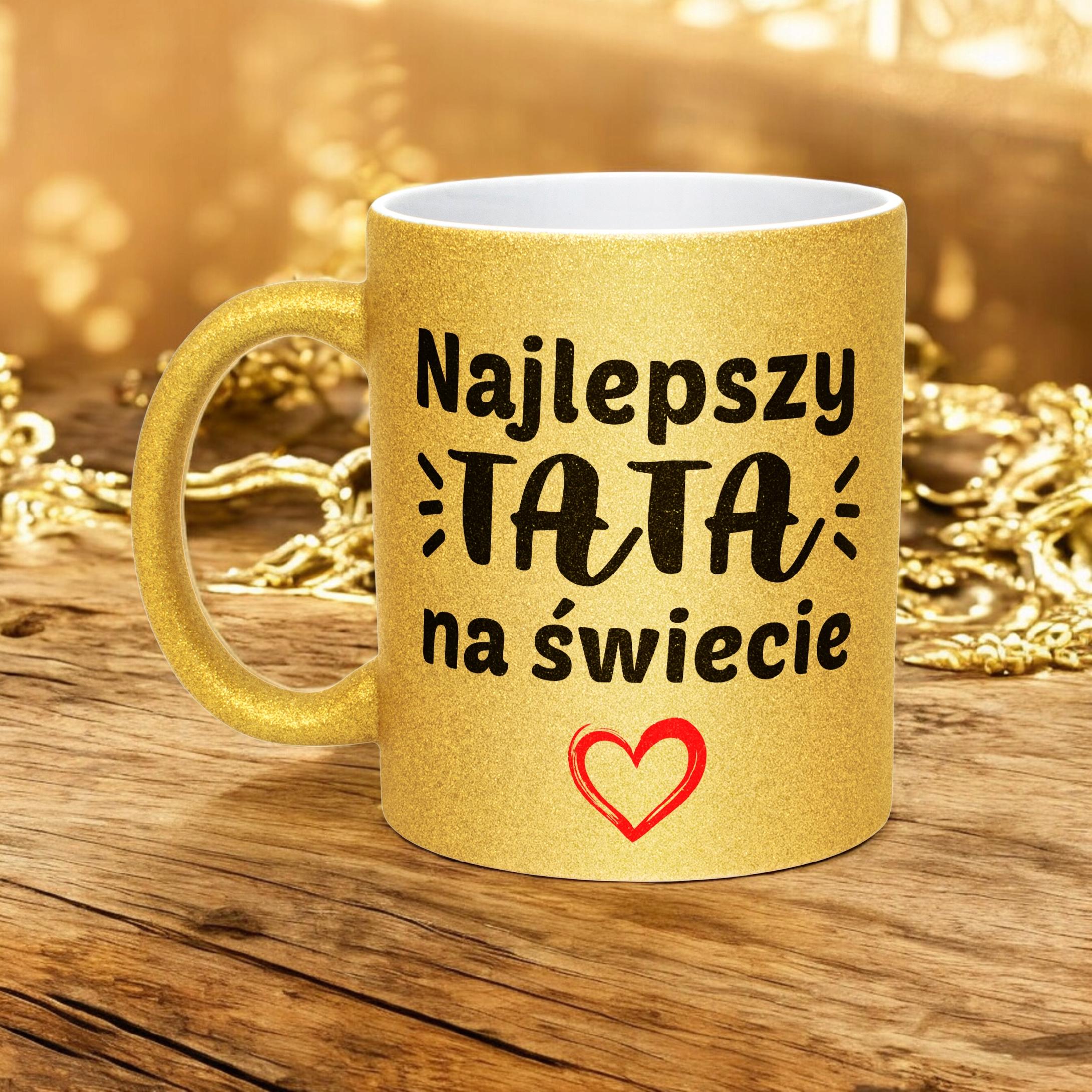 ✨ Złoty kubek brokatowy 330 ml z okazji Dnia Ojca – Zabawny prezent dla Taty z poczuciem humoru! ✨