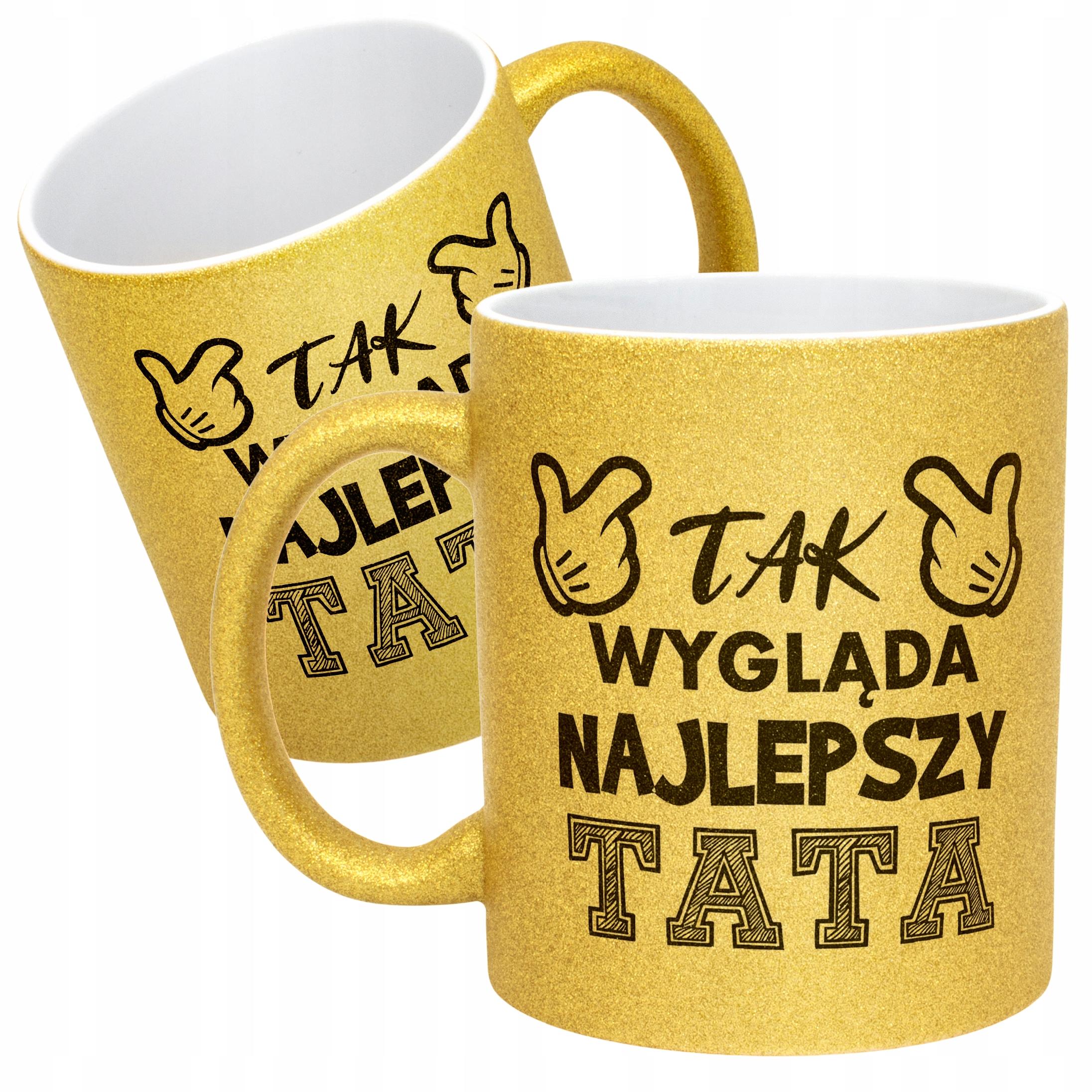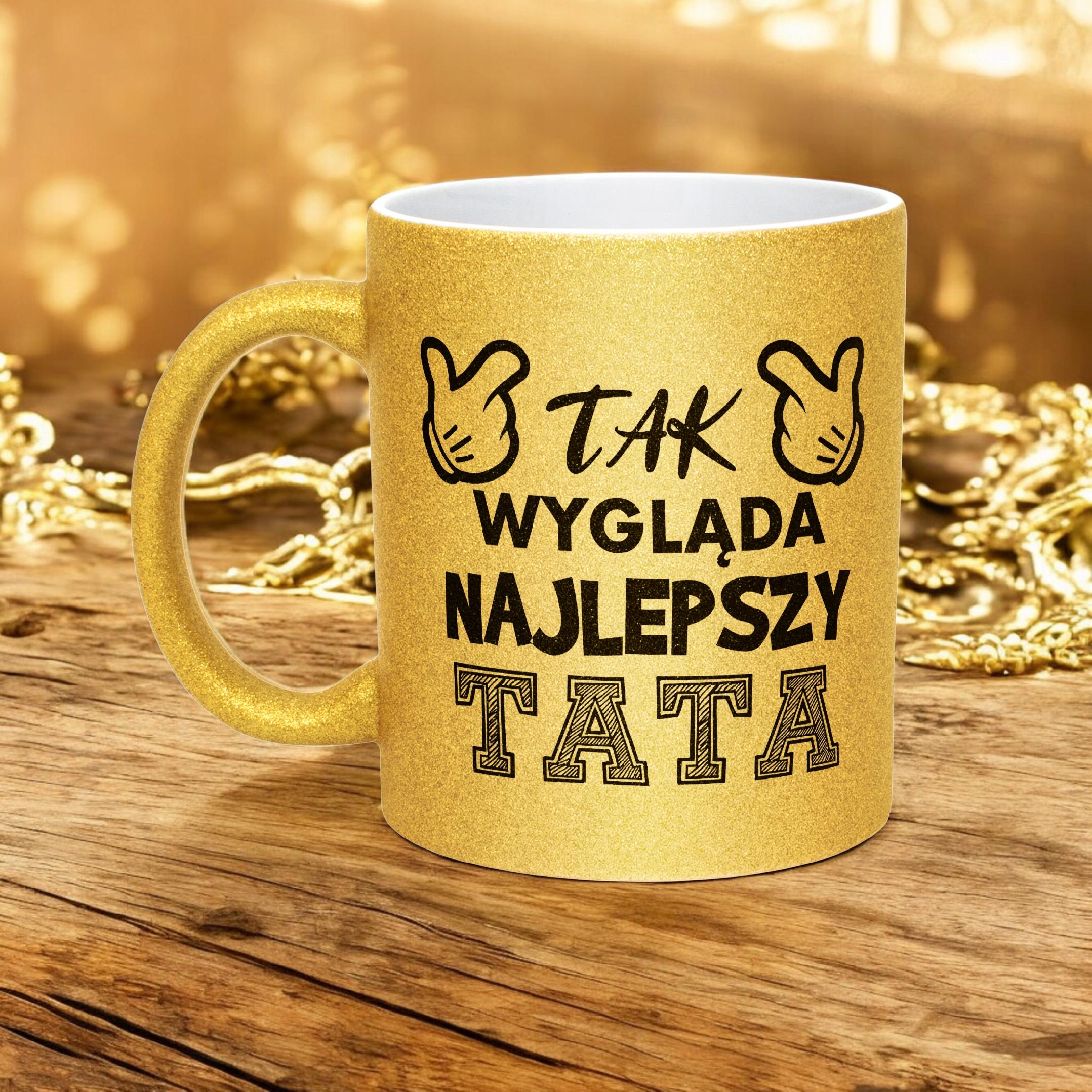 ✨ Złoty kubek brokatowy 330 ml z okazji Dnia Ojca – Zabawny prezent dla Taty z poczuciem humoru! ✨