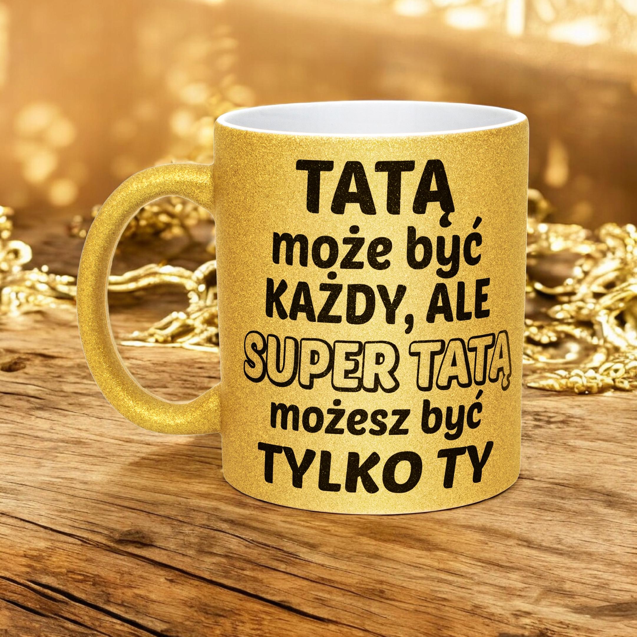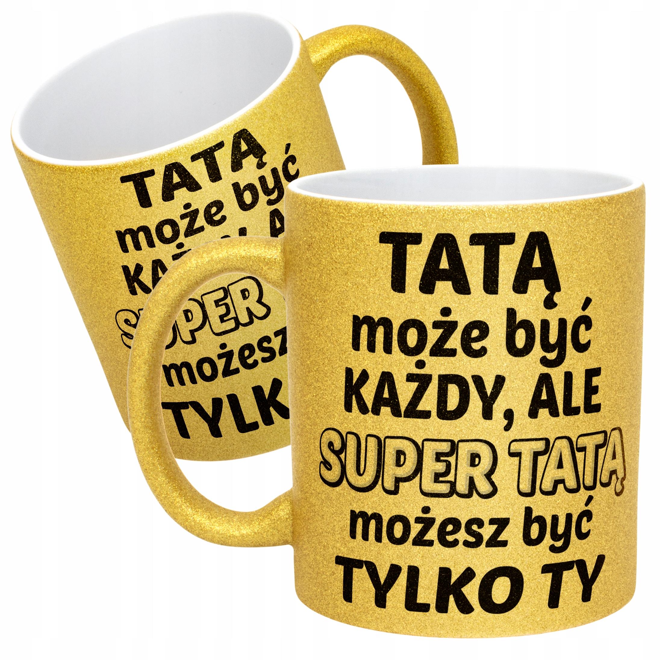 ✨ Złoty kubek brokatowy 330 ml z okazji Dnia Ojca – Zabawny prezent dla Taty z poczuciem humoru! ✨