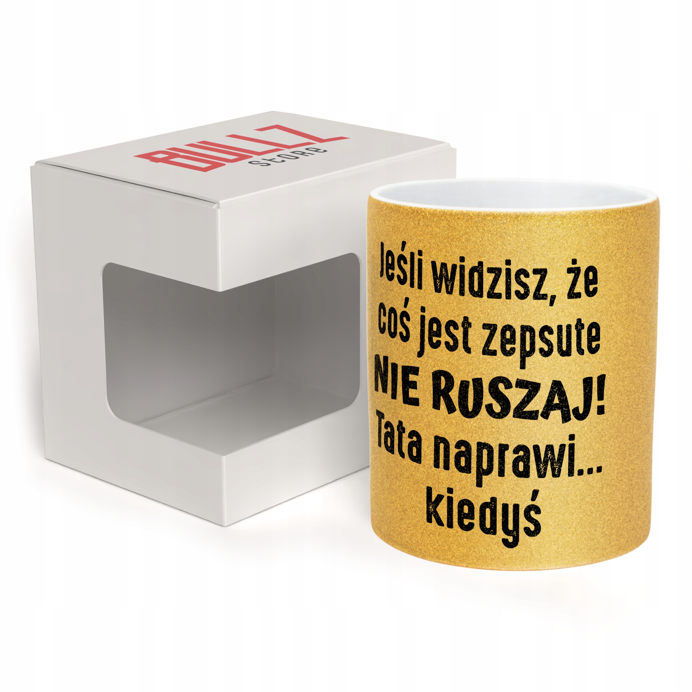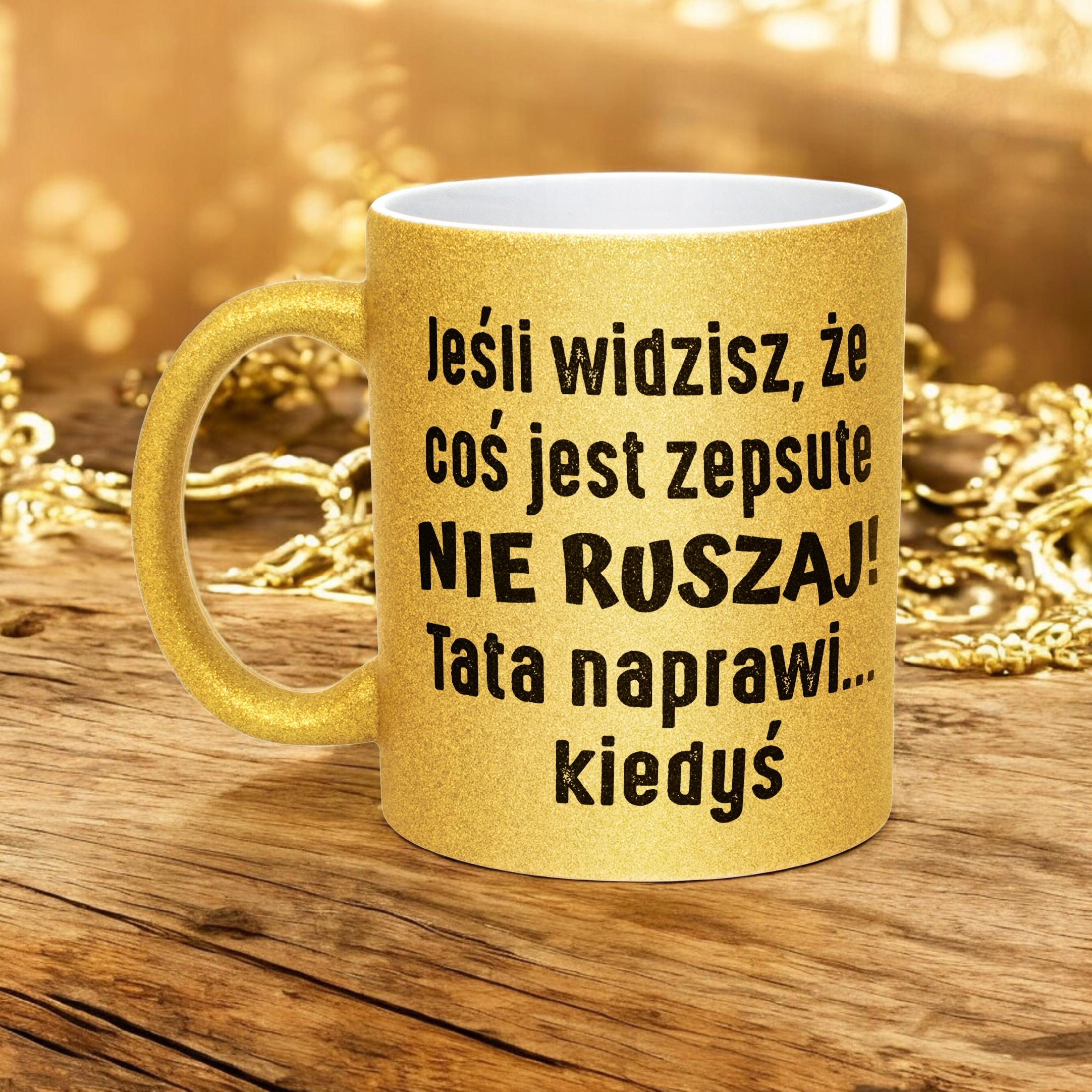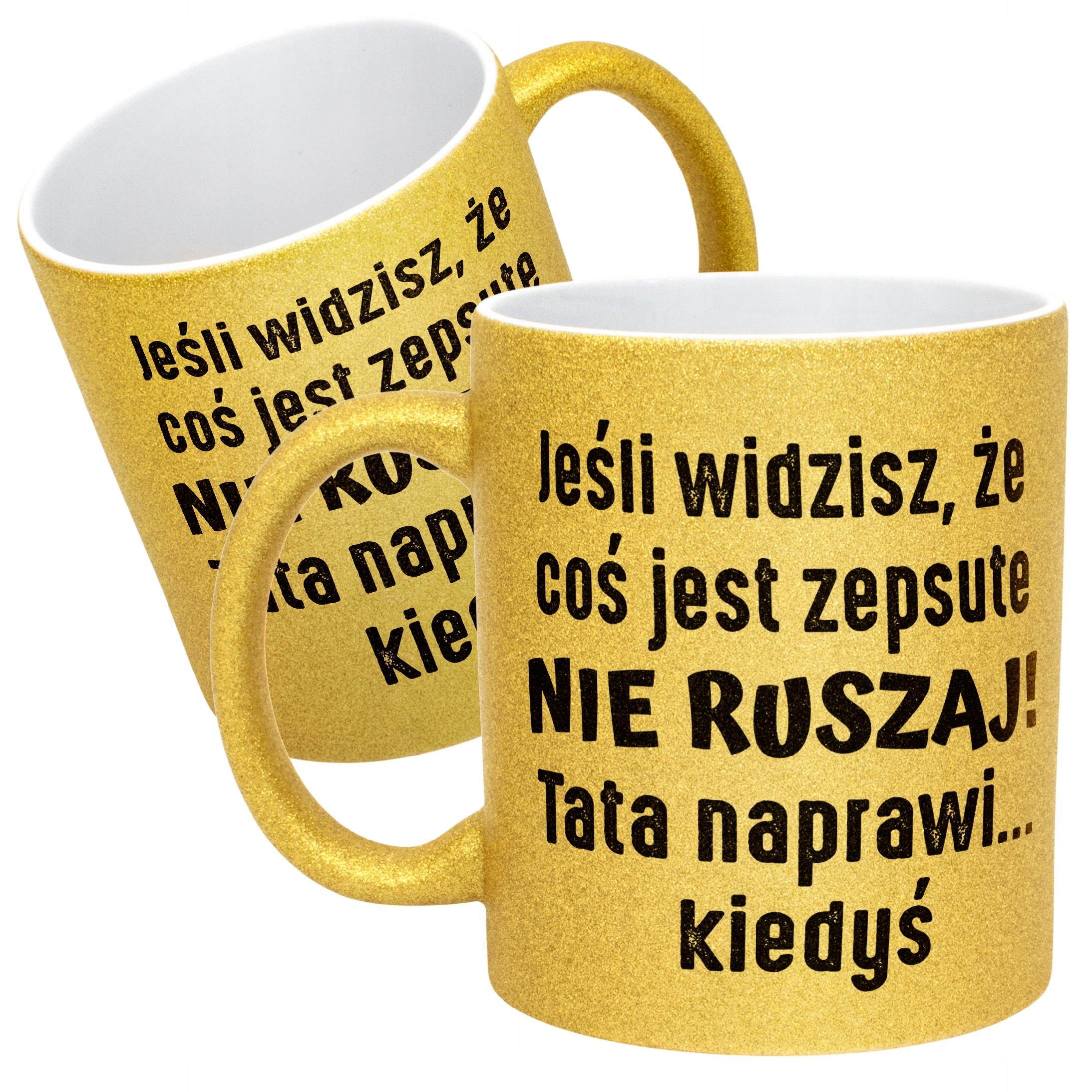 ✨ Złoty kubek brokatowy 330 ml z okazji Dnia Ojca – Zabawny prezent dla Taty z poczuciem humoru! ✨
