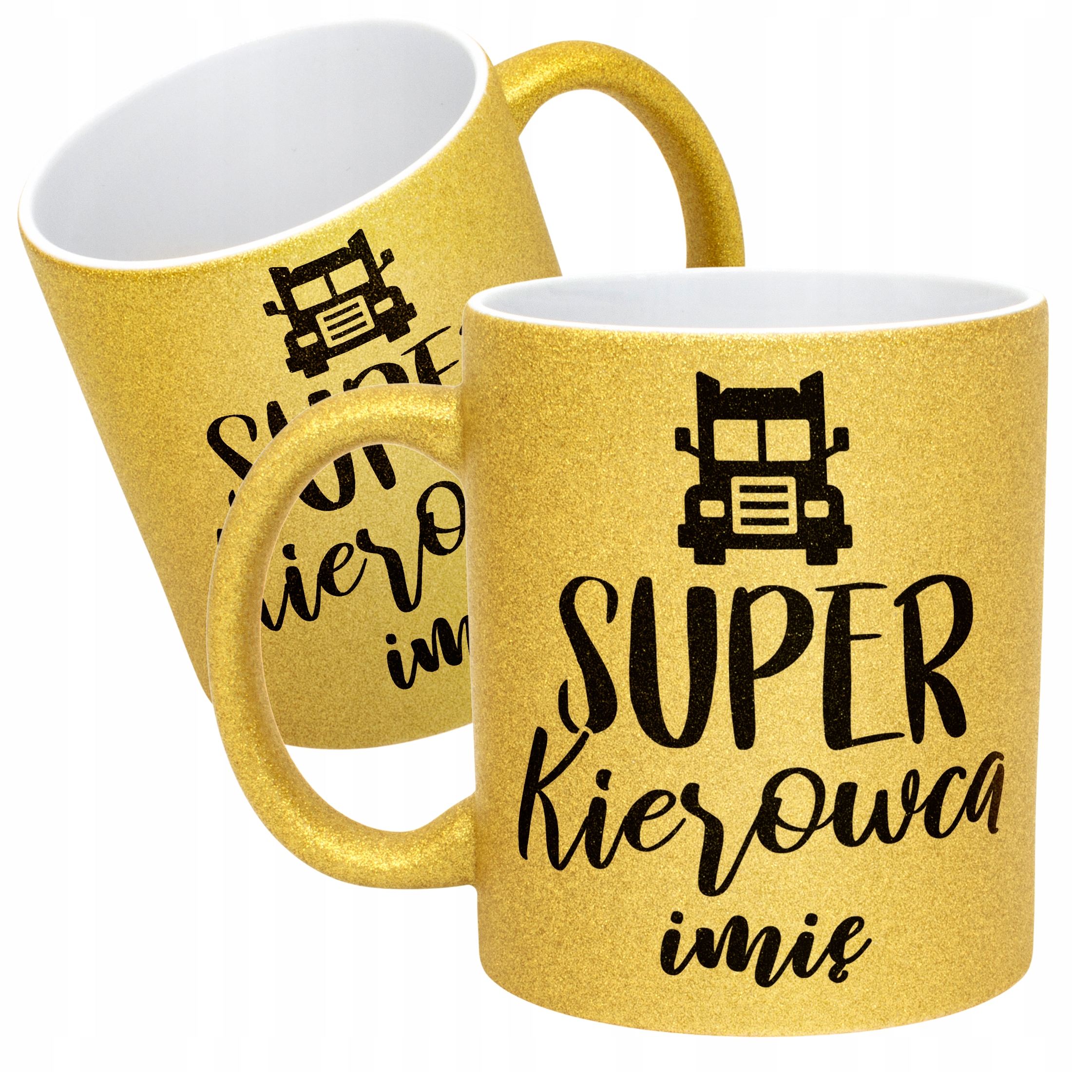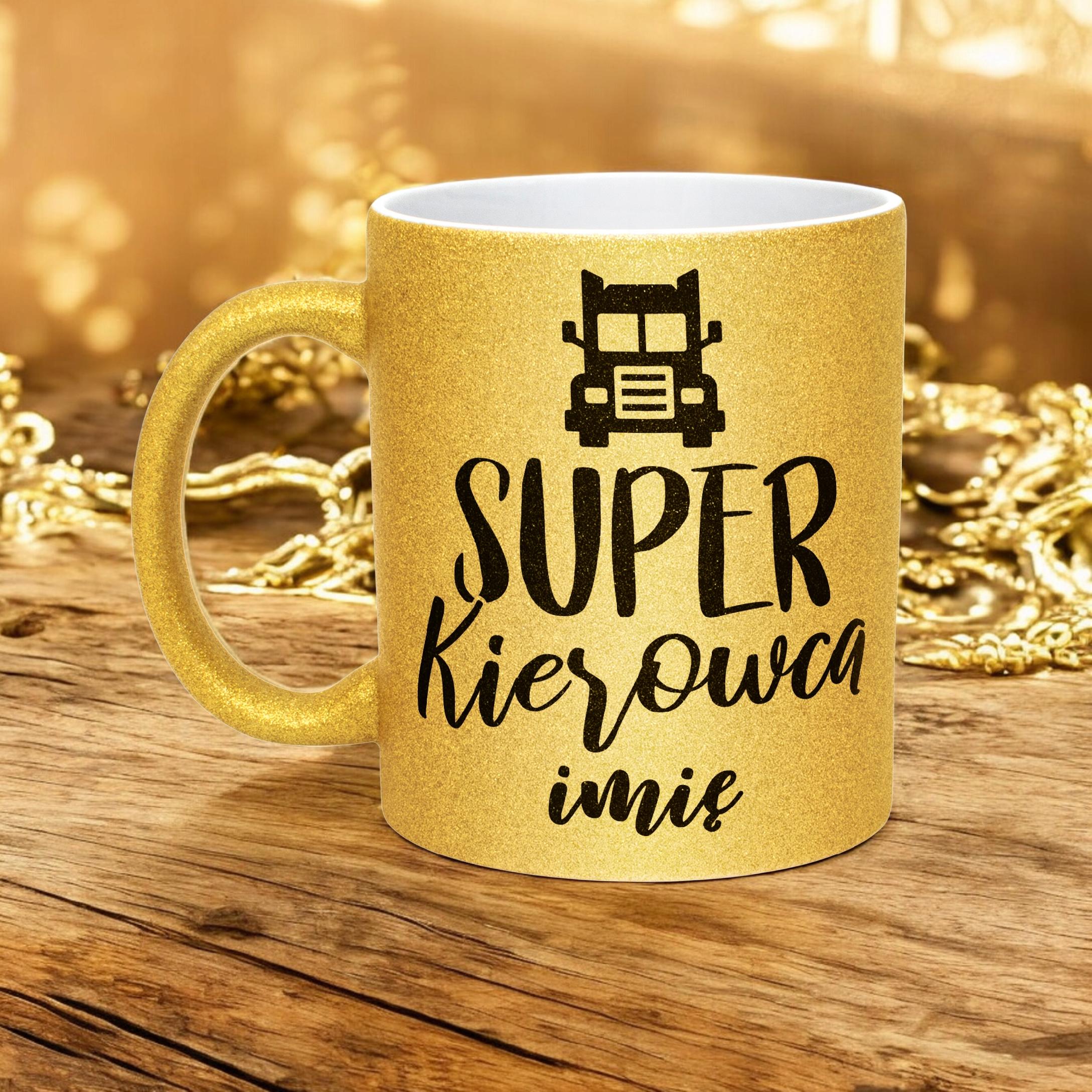 ✨ Personalizowany Złoty kubek brokatowy ceramiczny 330 ml dla Super Kierowcy – Idealny prezent dla mistrza kierownicy i trasy! ✨
