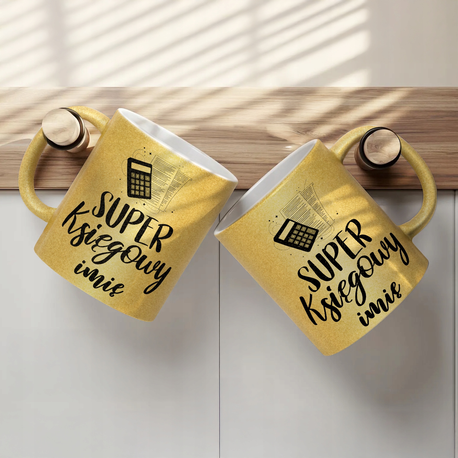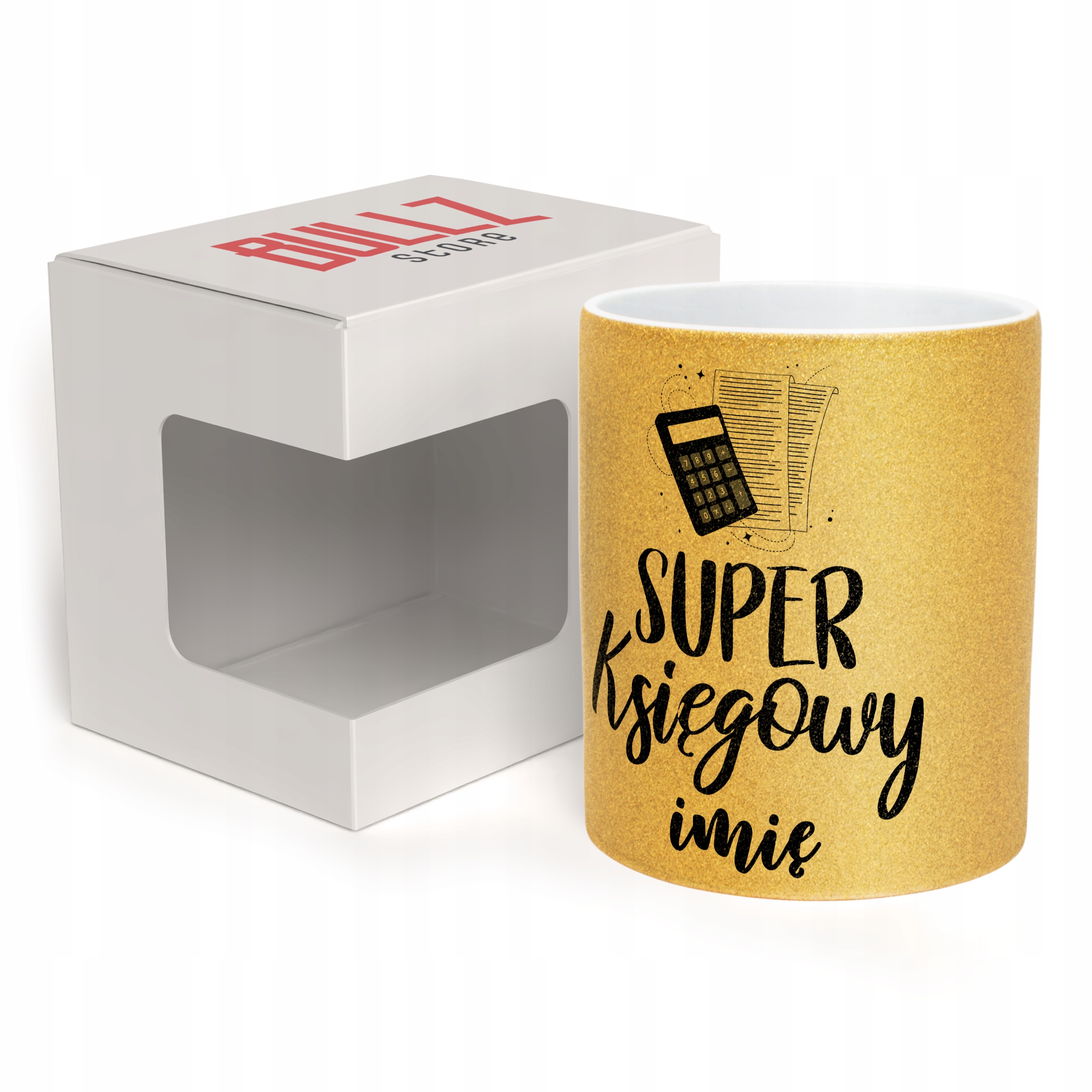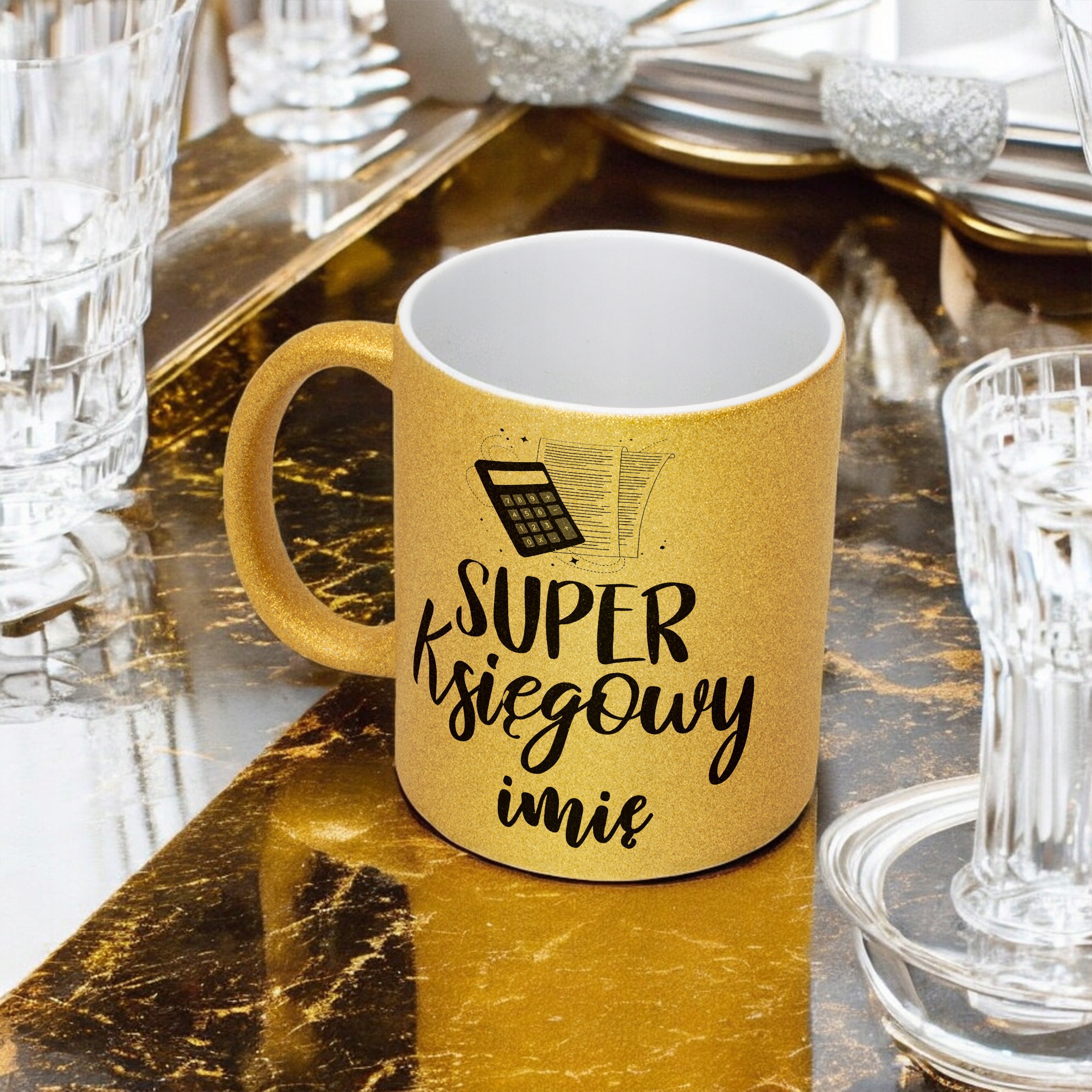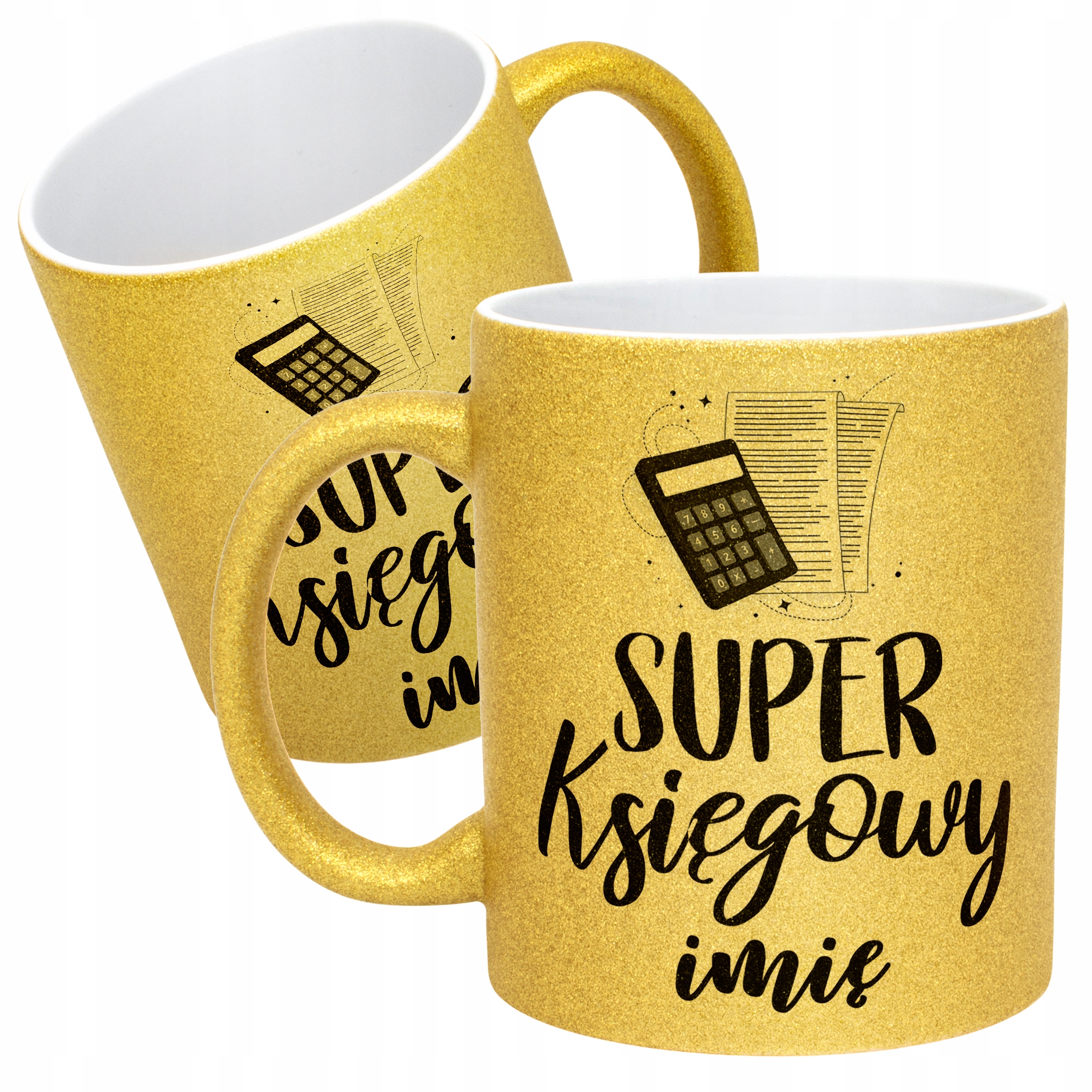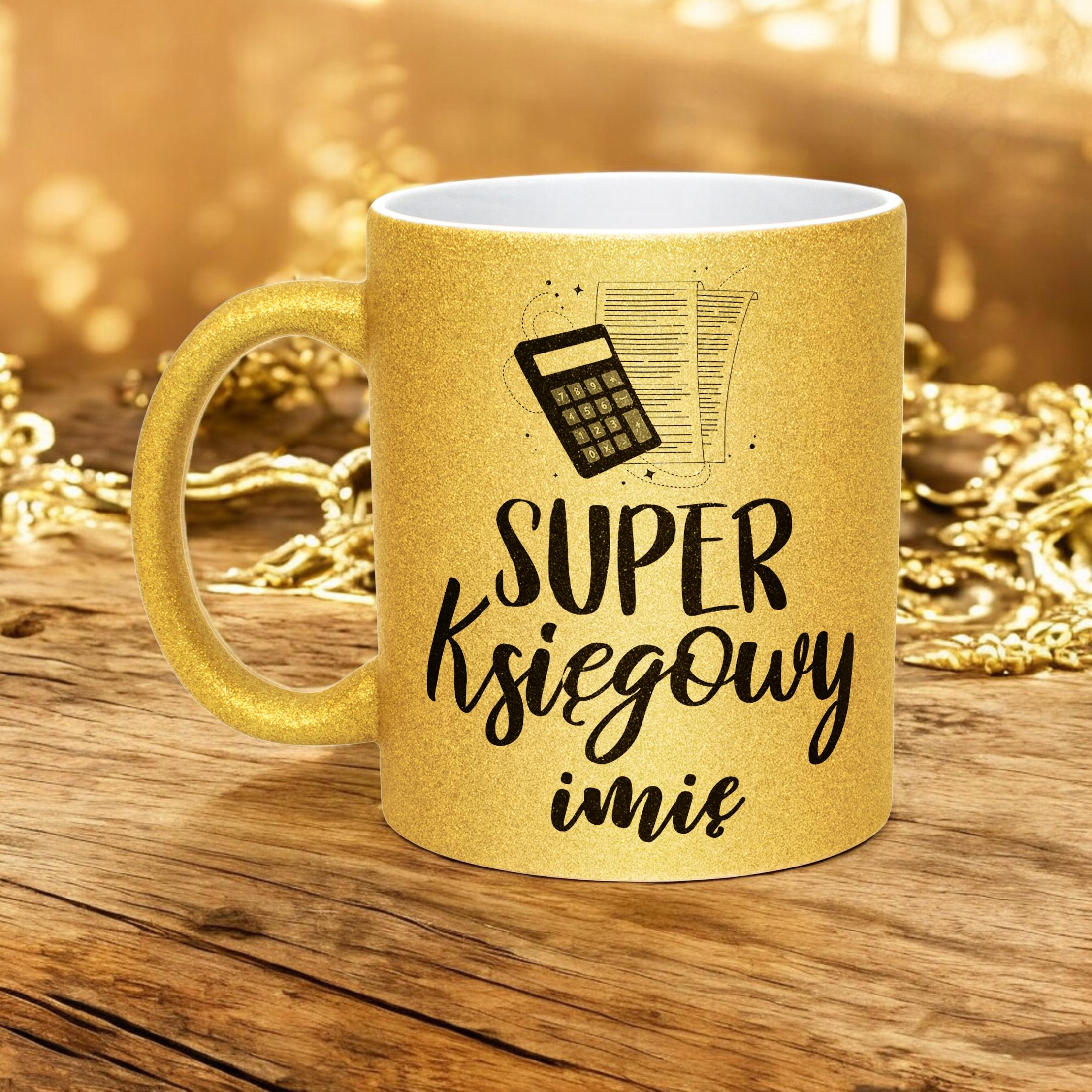✨ Personalizowany Złoty kubek brokatowy ceramiczny 330 ml dla Super Księgowego – Idealny prezent dla mistrza liczb i przepisów! ✨