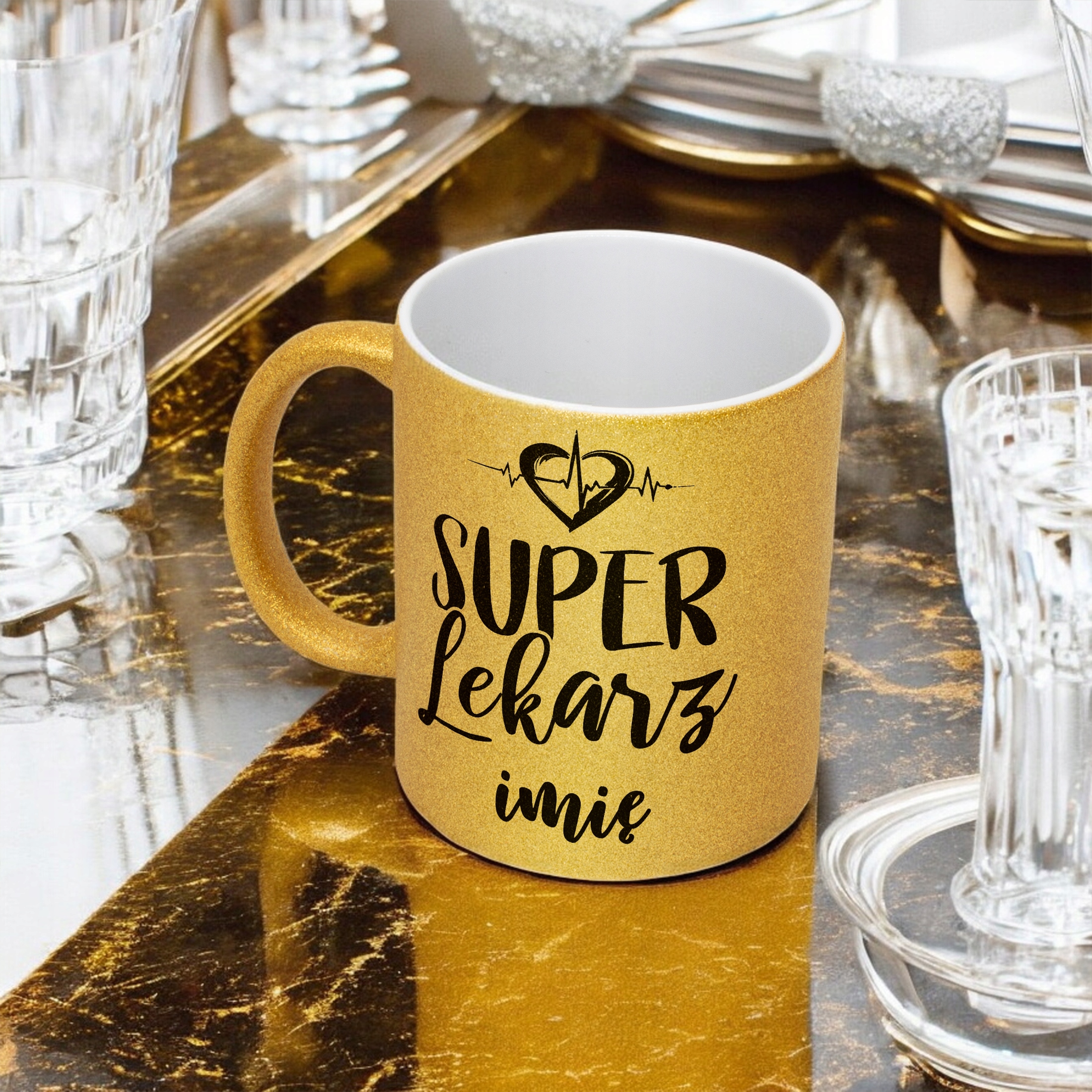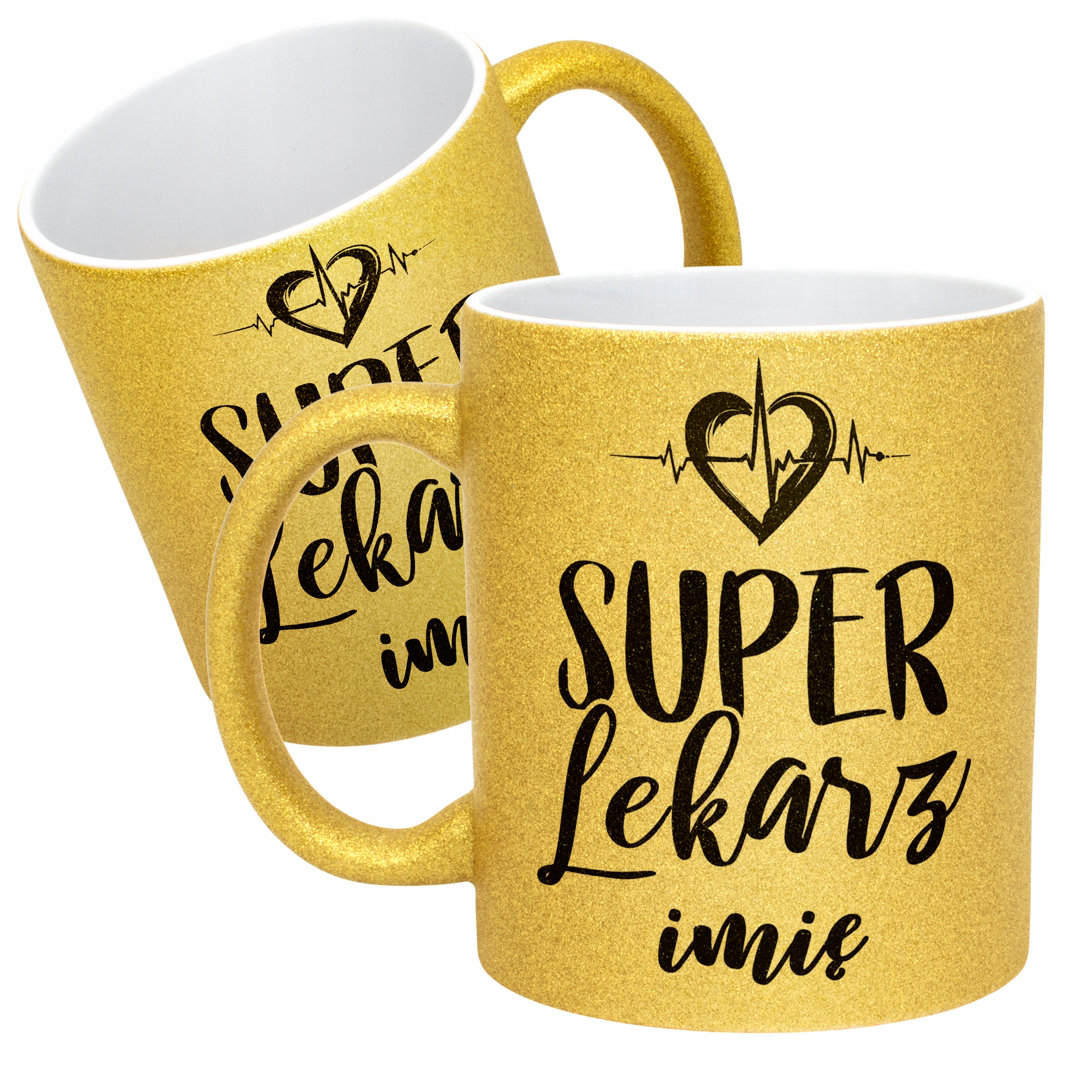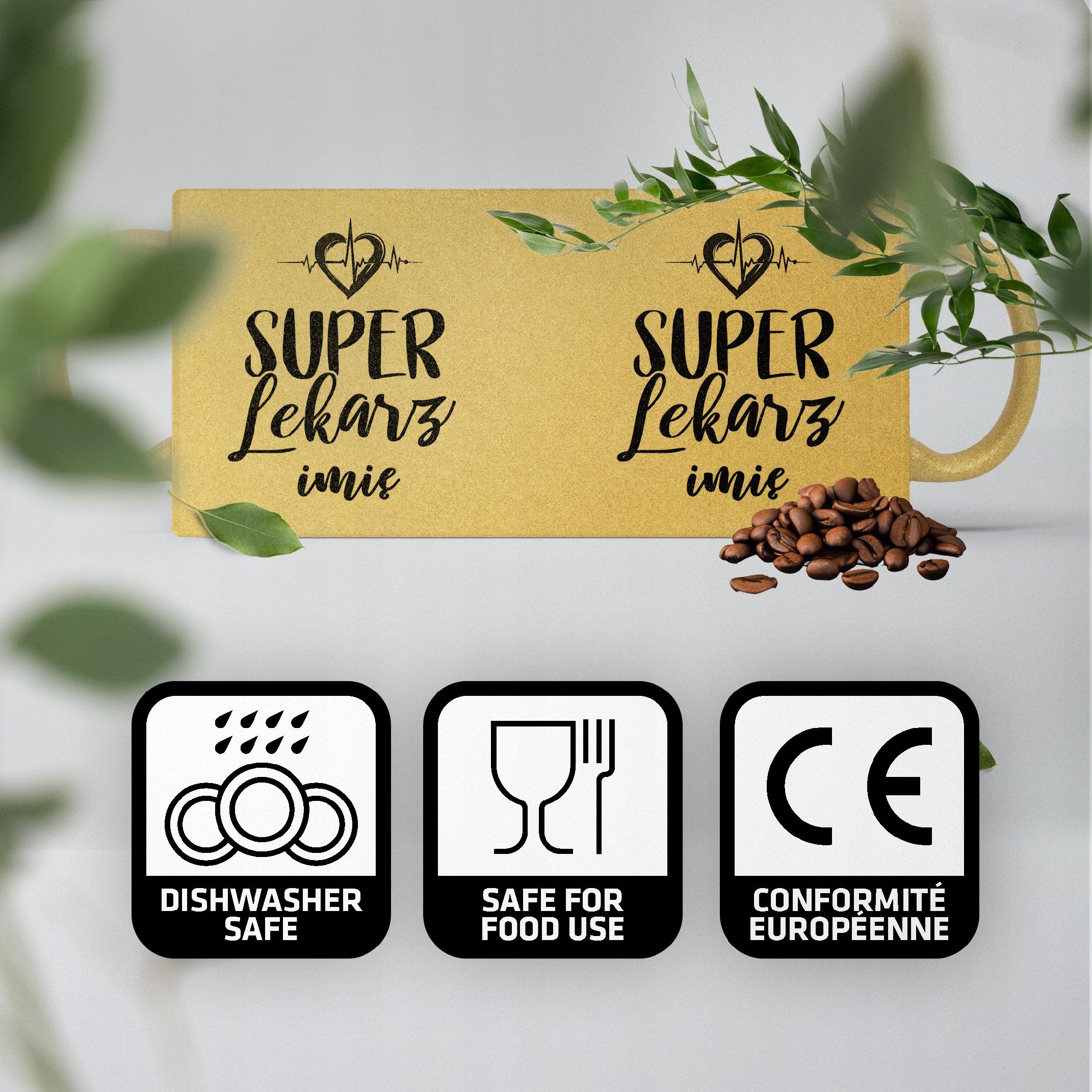 ✨ Personalizowany Złoty kubek brokatowy ceramiczny 330 ml dla Super Lekarza – Idealny prezent dla bohatera w białym fartuchu! ✨