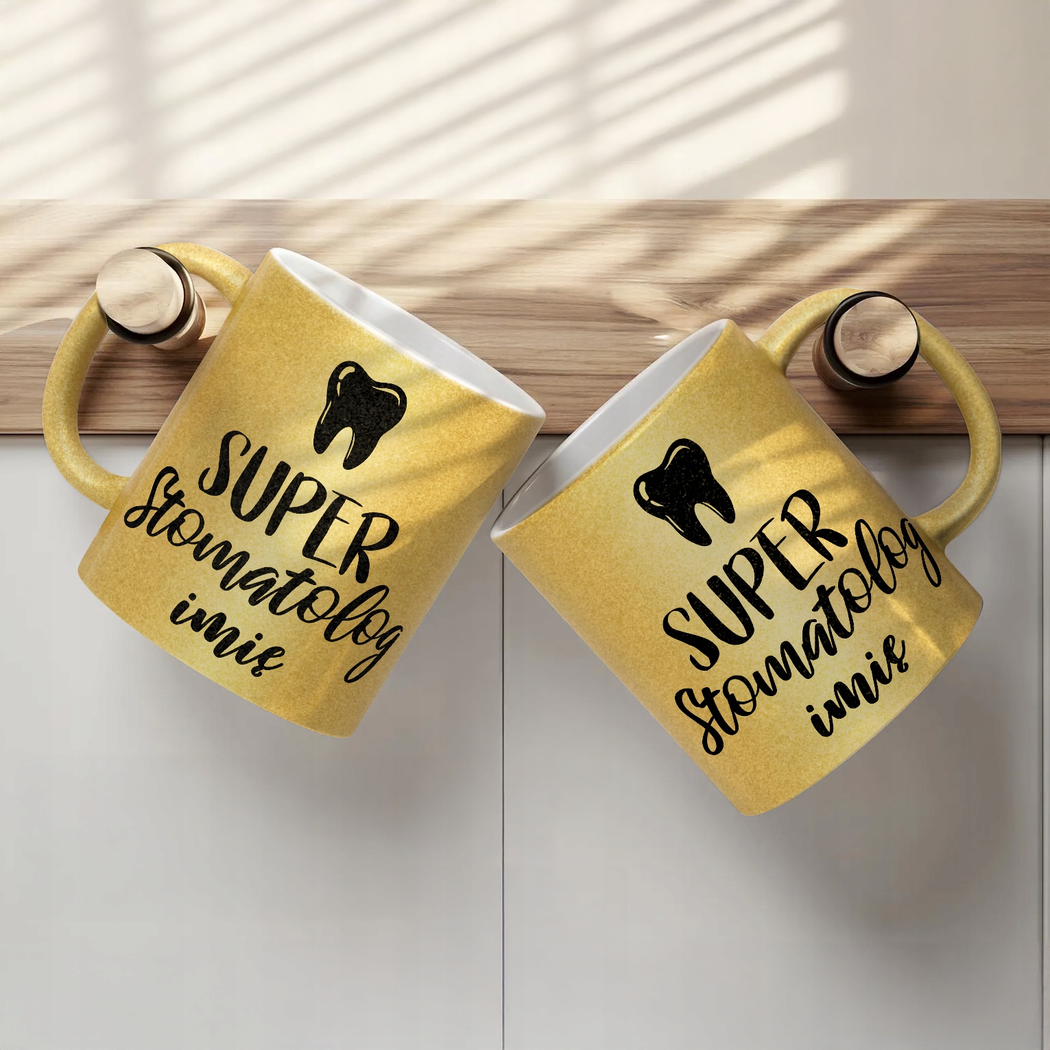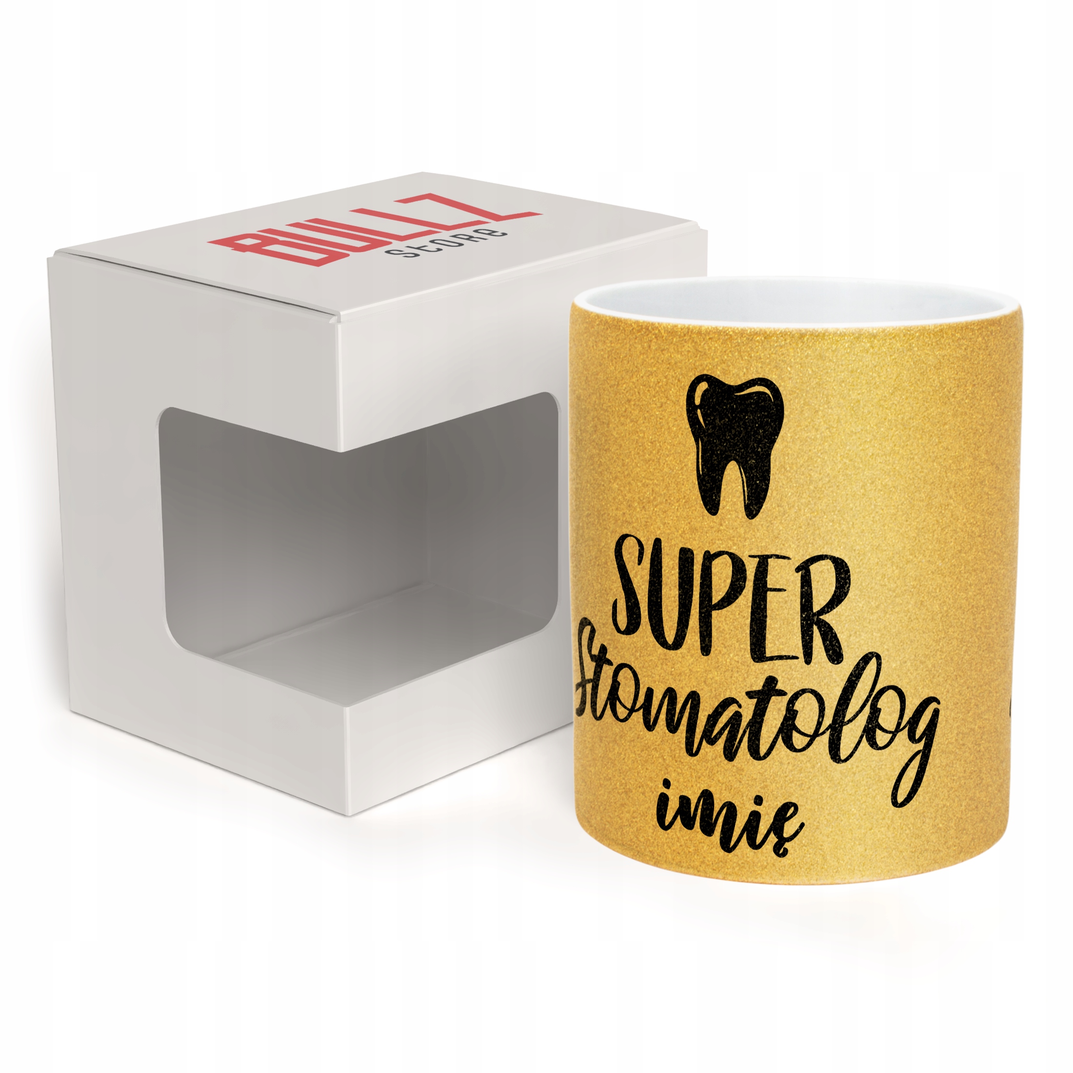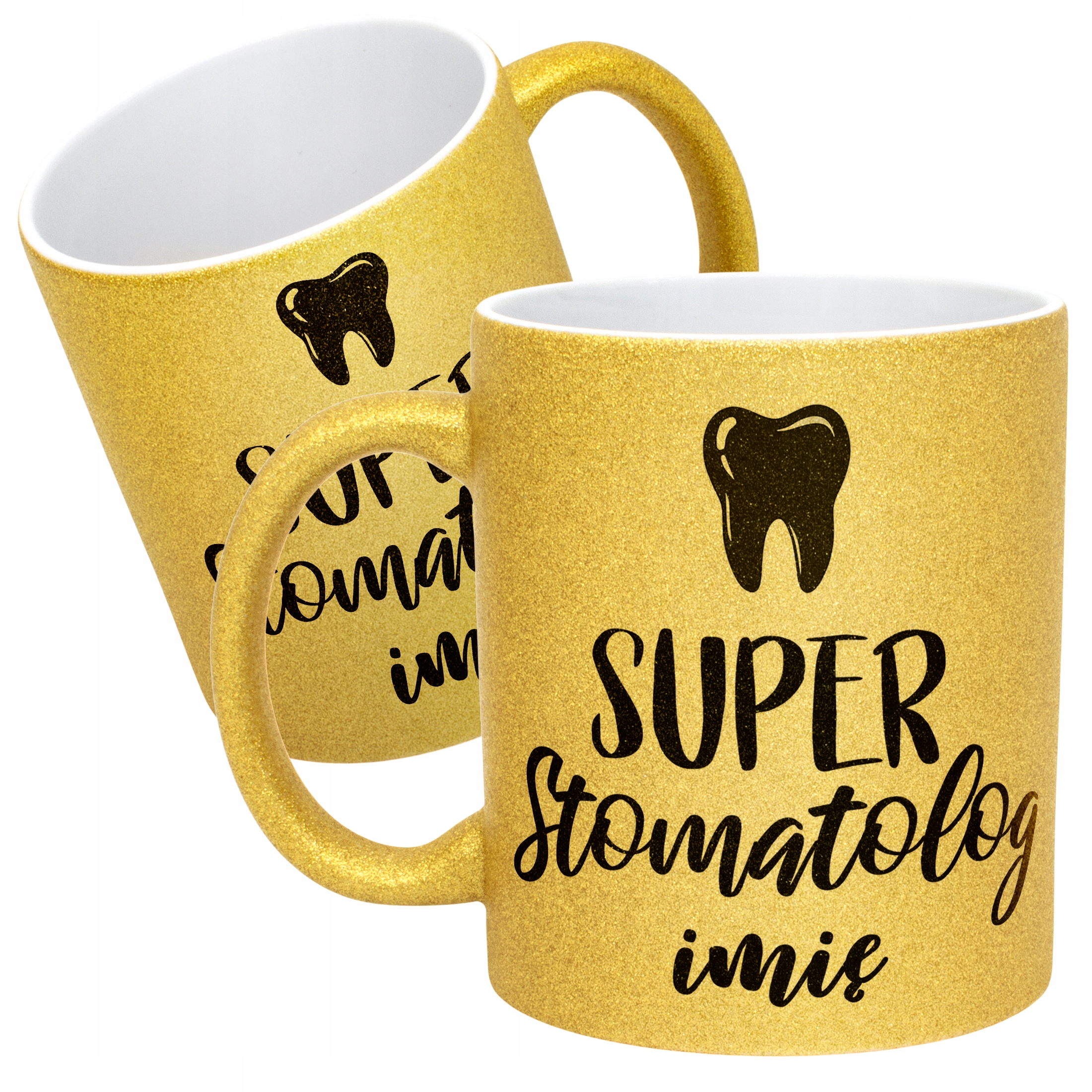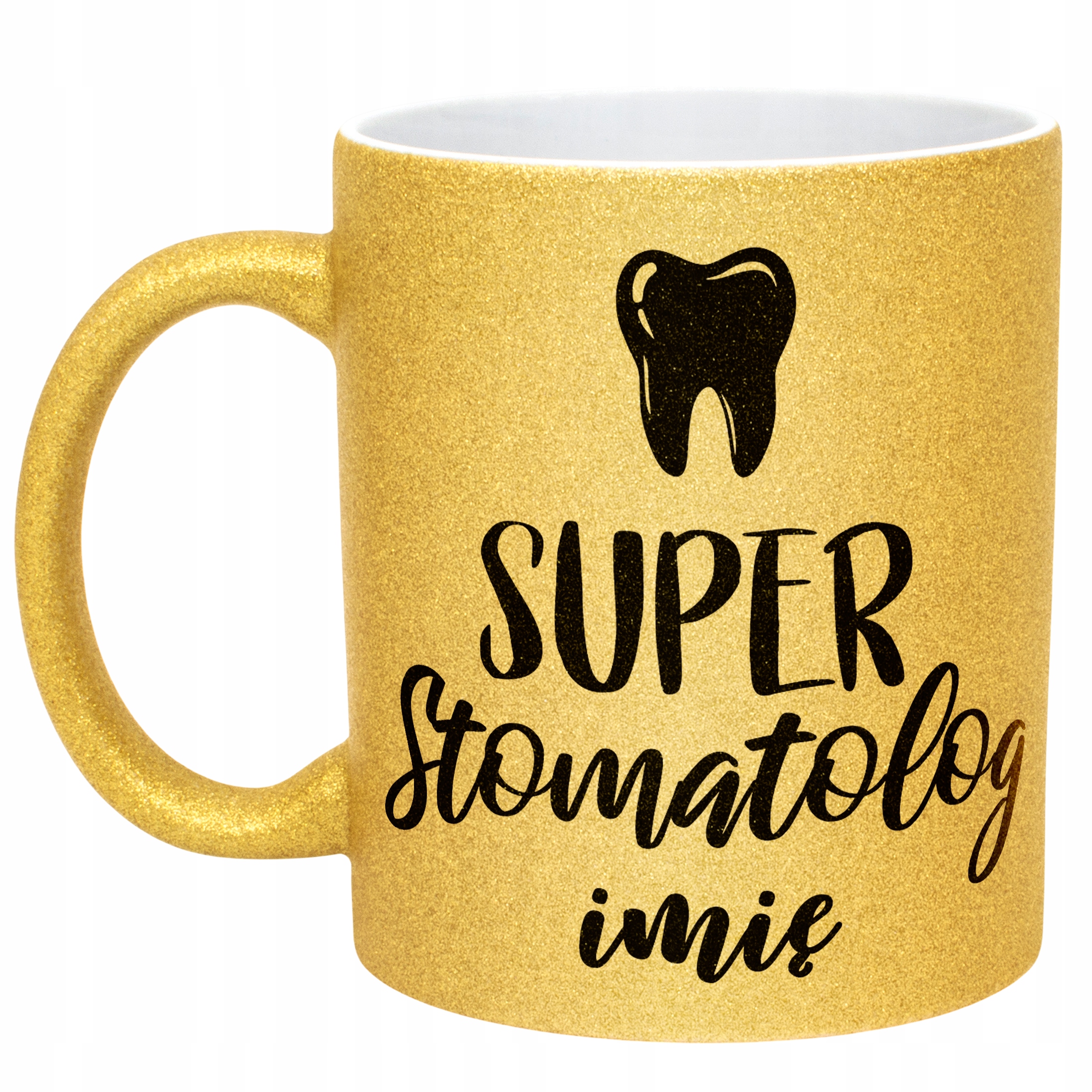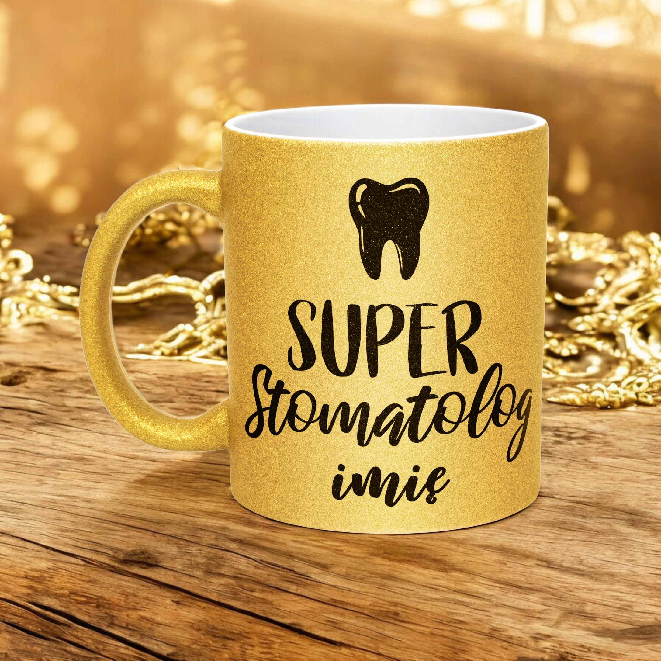 ✨ Personalizowany Złoty kubek brokatowy ceramiczny 330 ml dla Super Stomatologa – Idealny prezent dla dentysty, który przywraca uśmiech! ✨