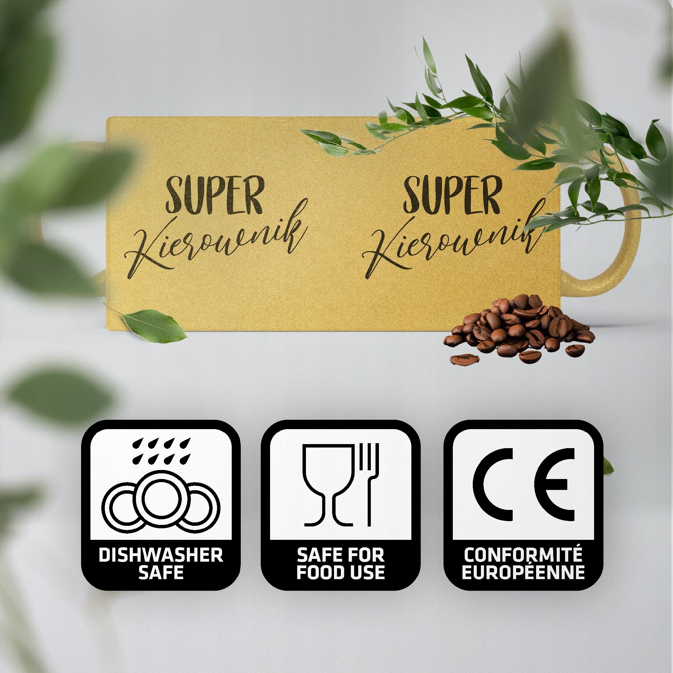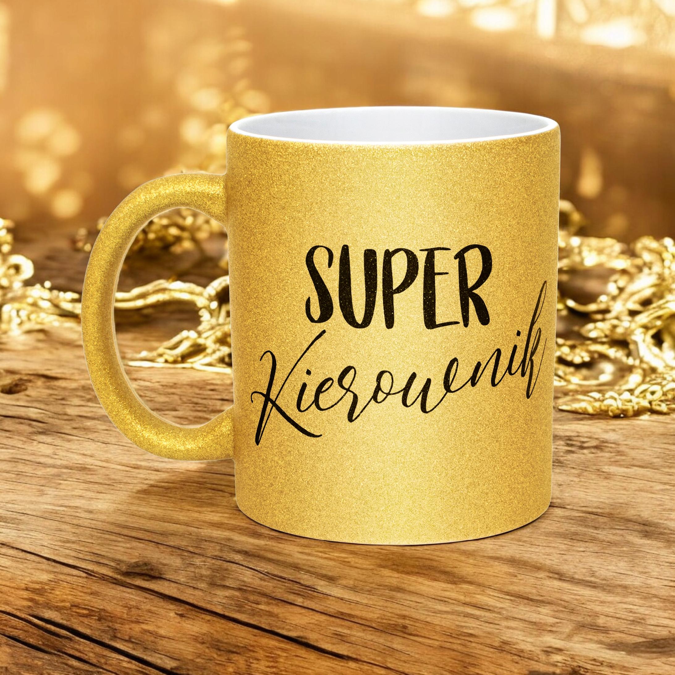 ✨ Złoty brokatowy kubek 330 ml Dla Super Kierownika – Piękny i elegancki prezent, który zachwycie każdą obdarowaną osobę. ✨