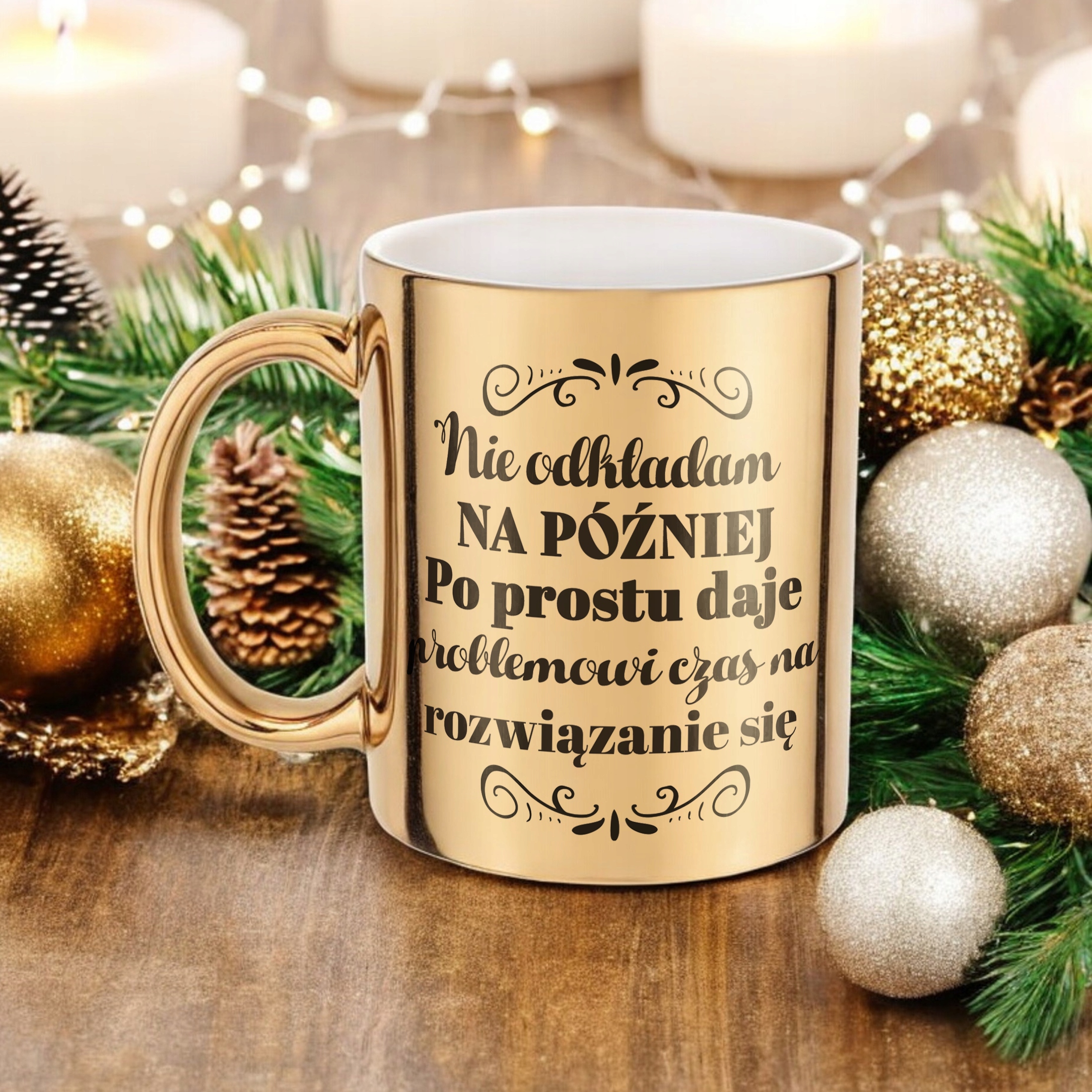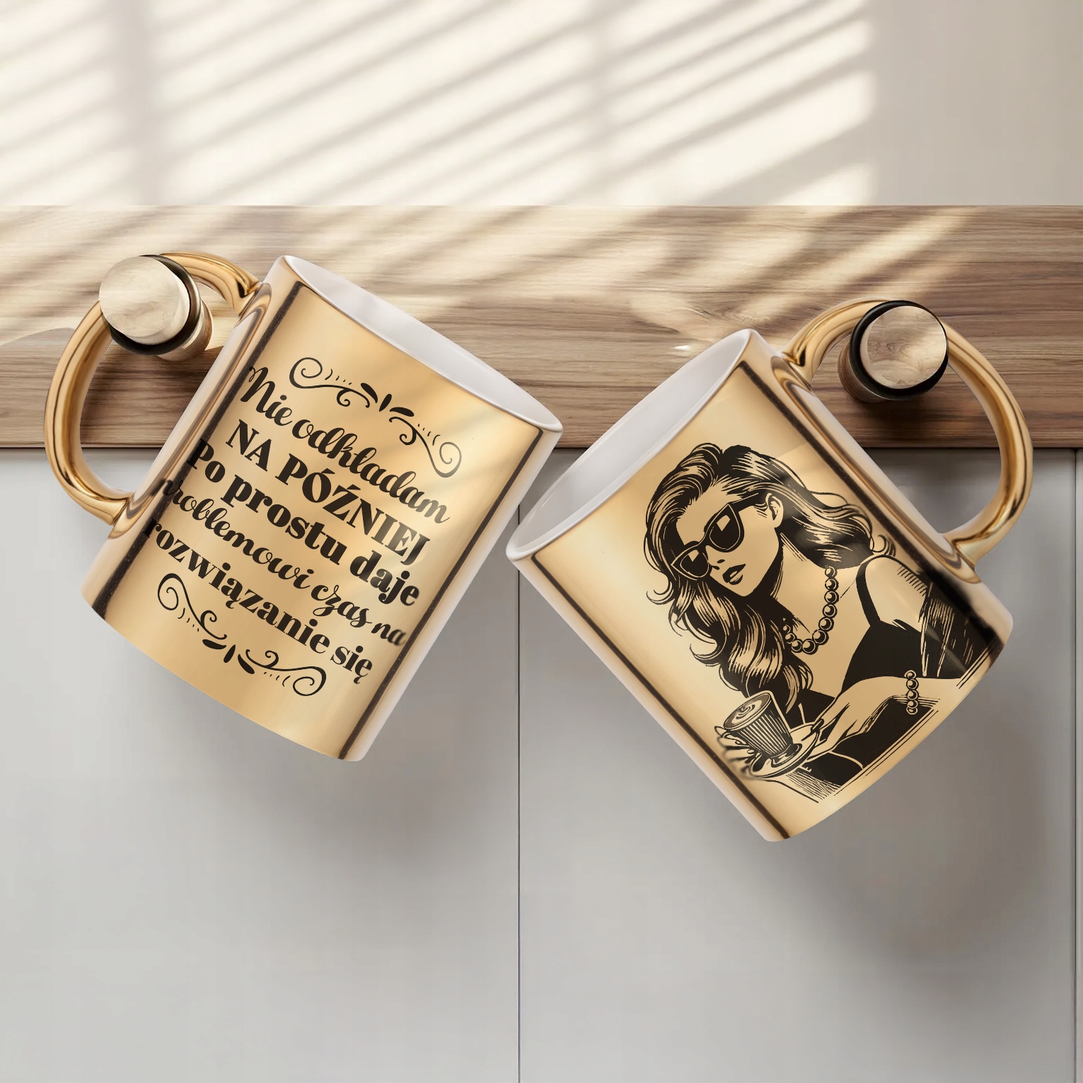 ✨ Złoty kubek z zabawnym i inspirującym napisem – Doskonały Prezent dla każdej Kobiety, który umili każdy dzień ✨