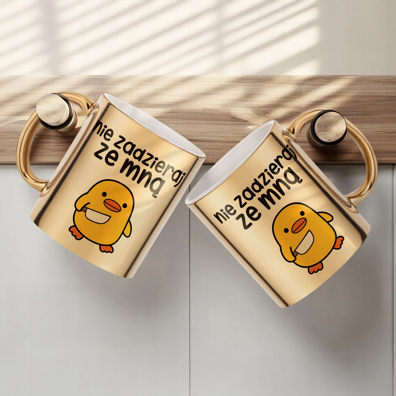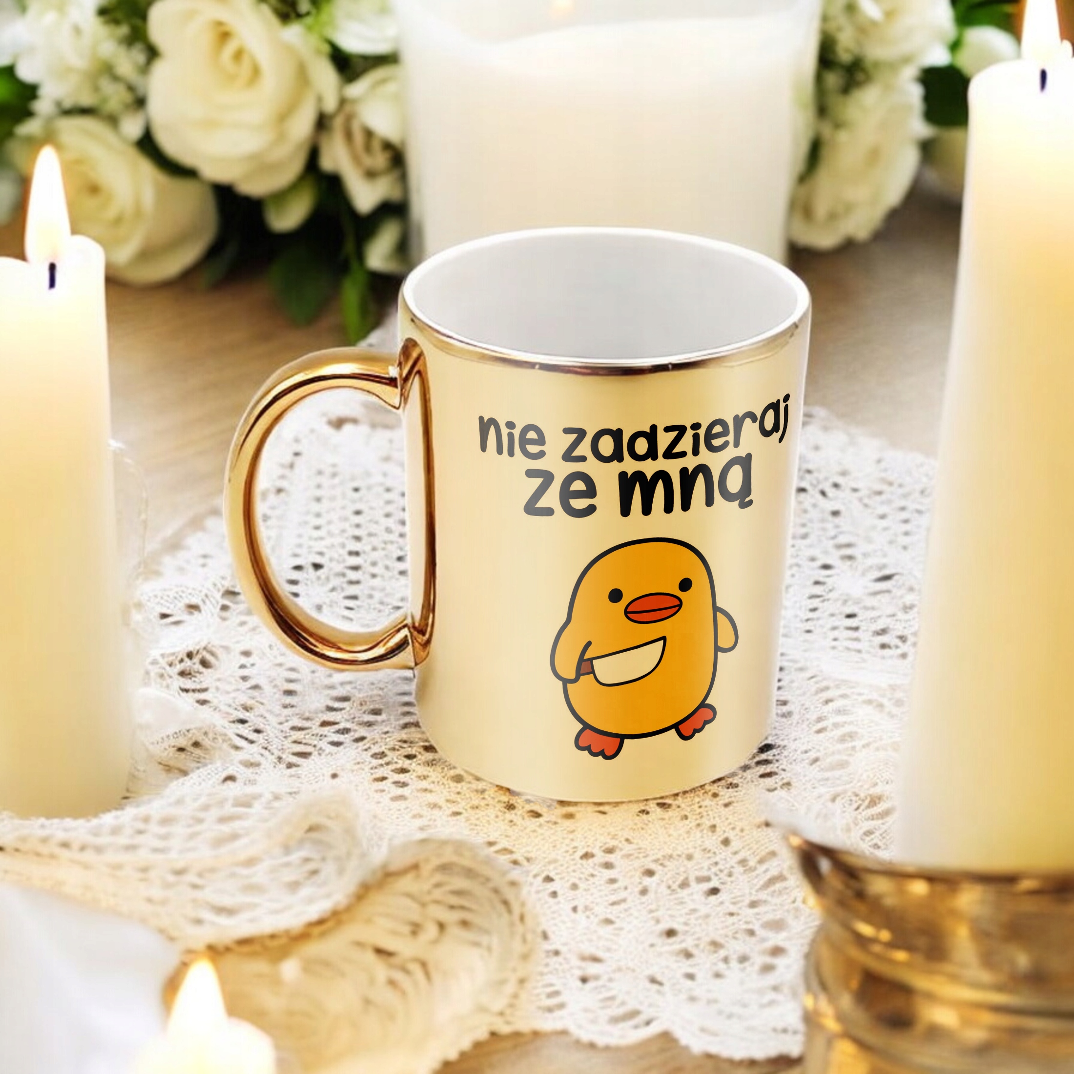 Złoty kubek z naszej oferty nie tylko doskonale sprawdzi się jako prezent, ale także świetnie wpasuje się w każde otoczenie – od domowej kuchni po biurowe biurko. Jego wyjątkowy design z pewnością wywoła uśmiech na twarzy obdarowanej osoby, a jakość wykonania zapewni długotrwałe użytkowanie.