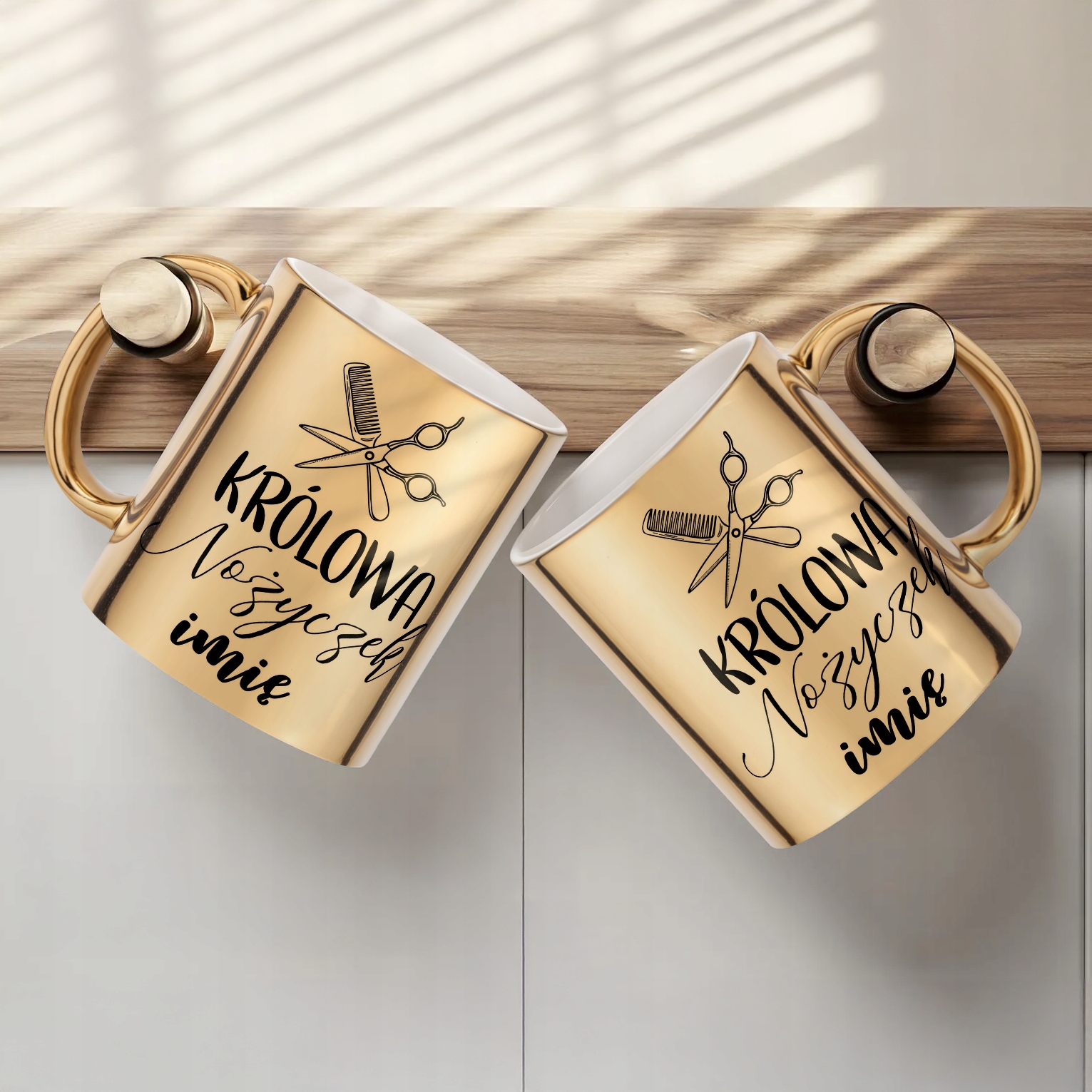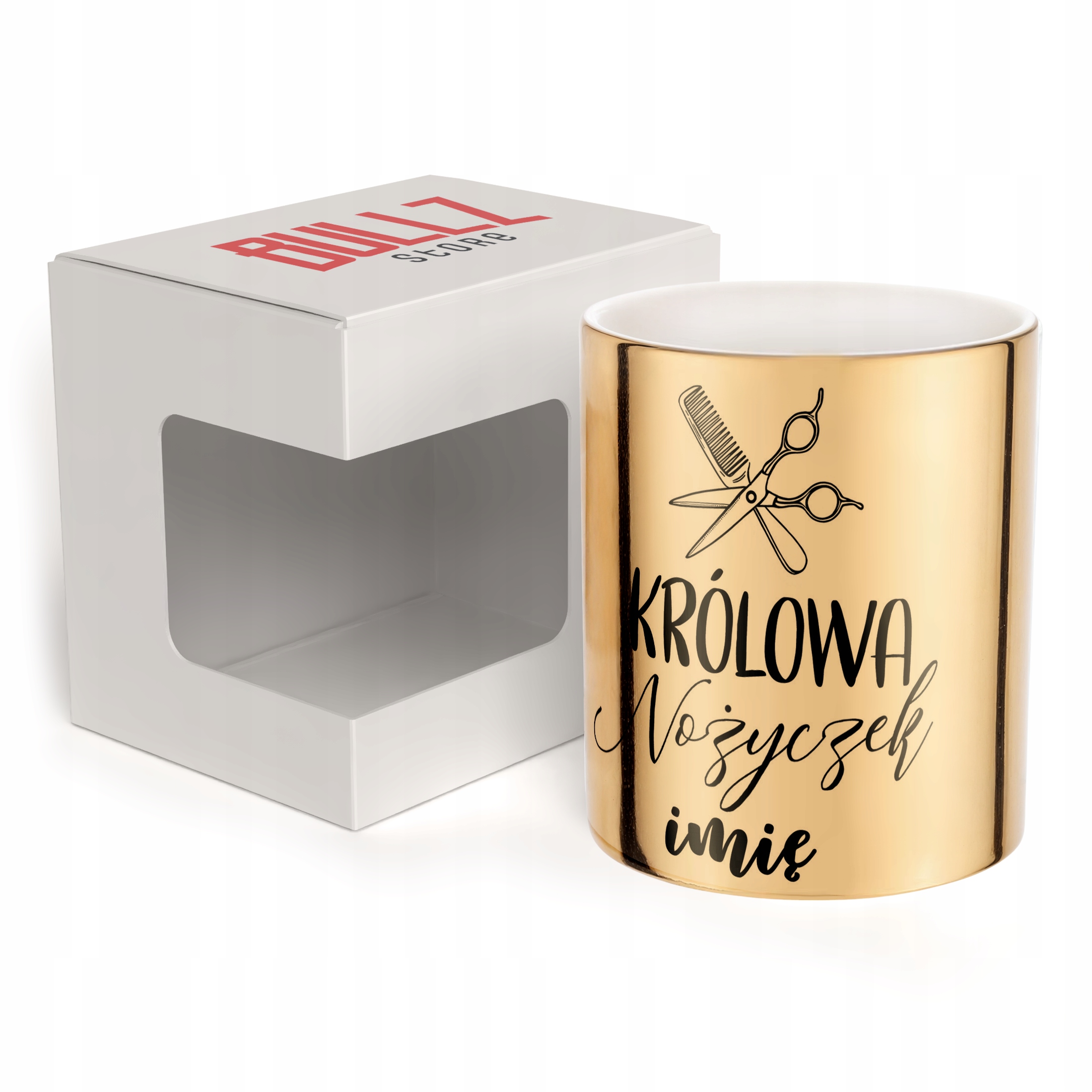 ✨ Personalizowany Złoty kubek ceramiczny 330 ml dla Królowa Nożyczek – Idealny prezent dla fryzjerki, która czyni cuda z włosami! ✨