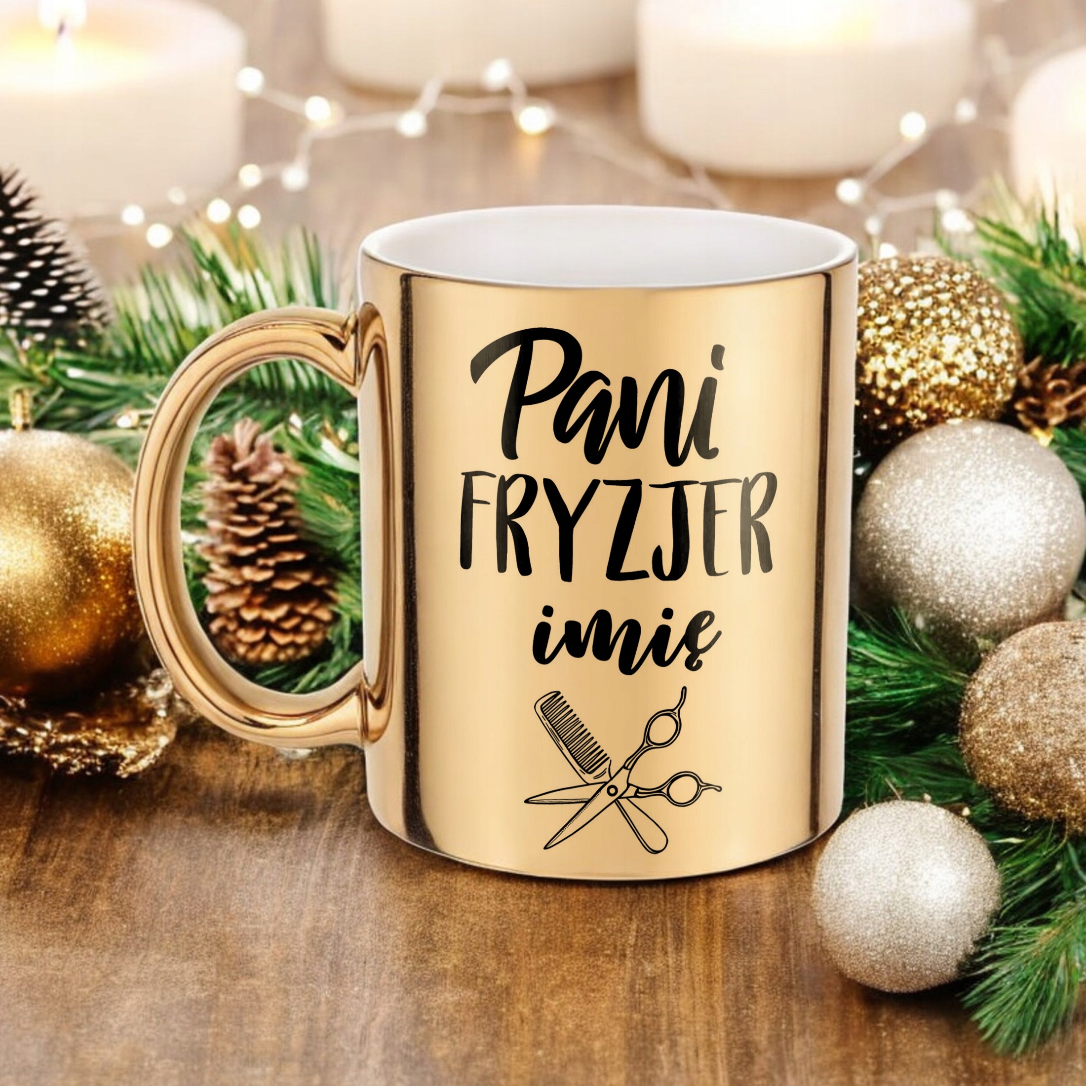 ✨ Personalizowany Złoty kubek ceramiczny 330 ml dla Pani Fryzjer – Idealny prezent dla fryzjerki, która czyni cuda z włosami! ✨