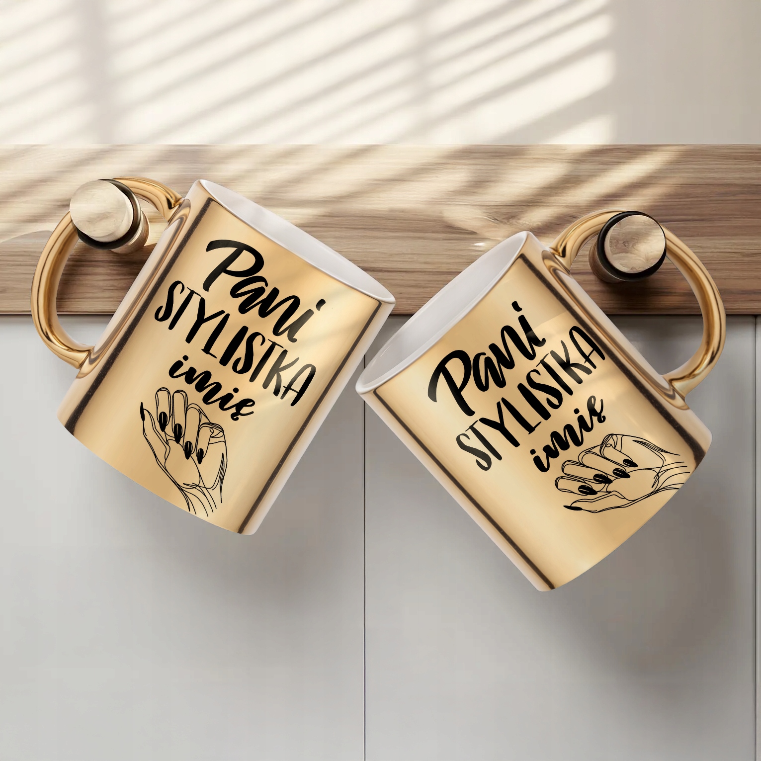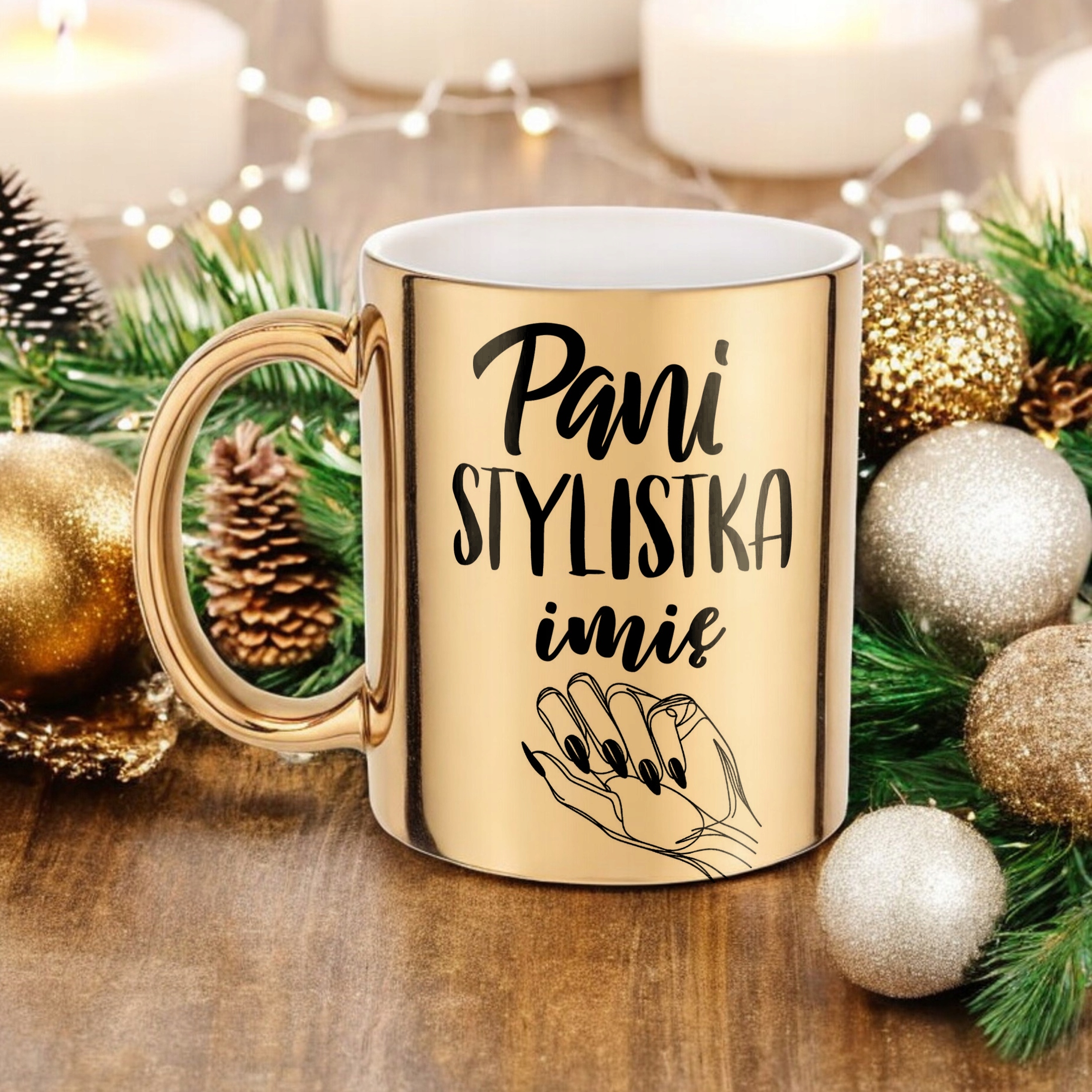 ✨ Personalizowany Złoty kubek ceramiczny 330 ml dla Pani Stylistki Paznokci – Idealny prezent dla stylistki paznokci, która zamienia dłonie w małe dzieła sztuki! ✨
